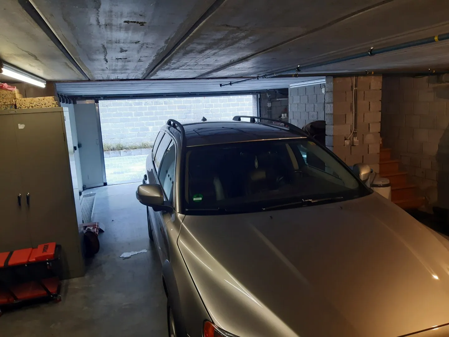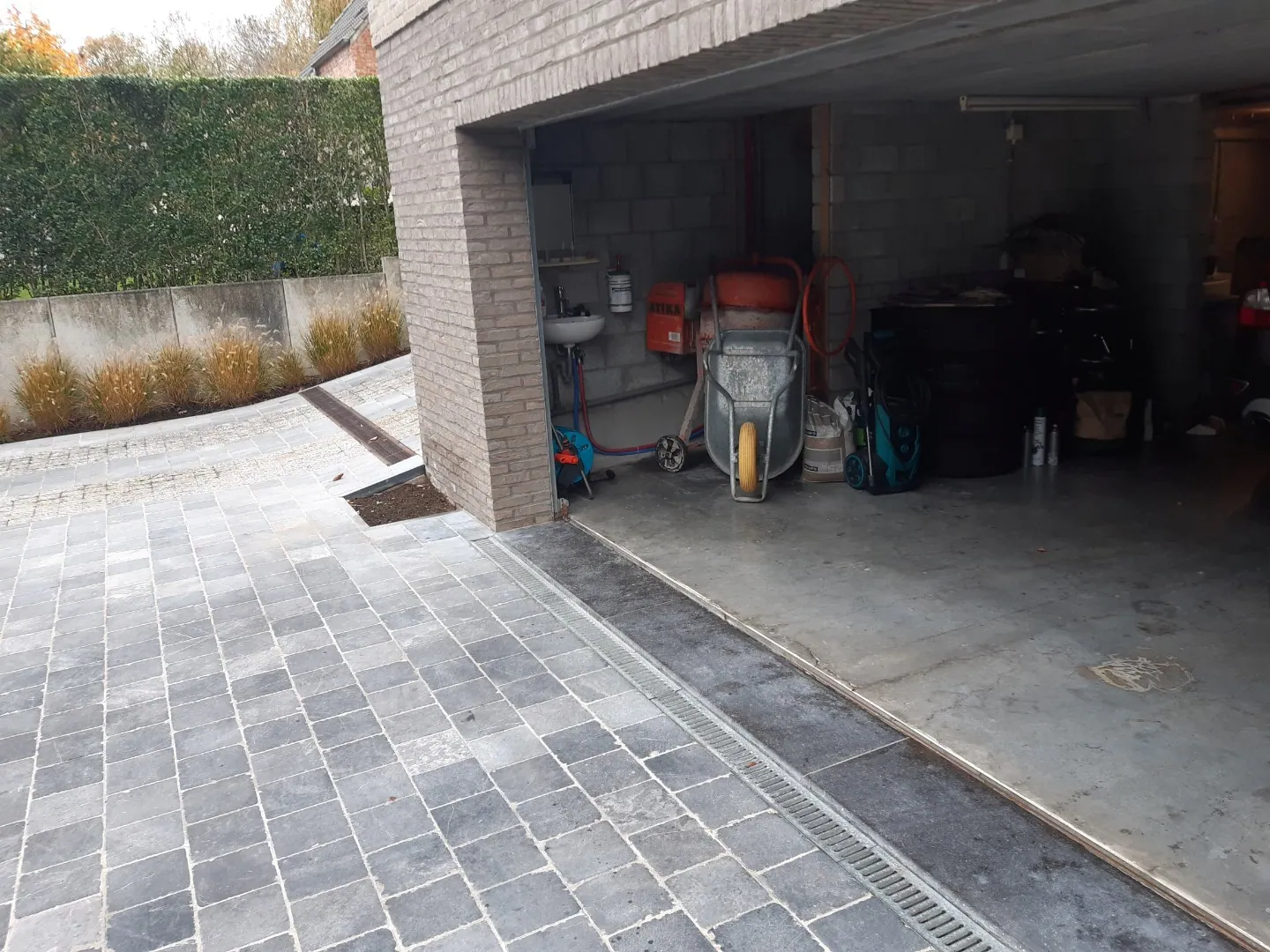 Het hellend perceel werd conceptueel geïntegreerd, waardoor de woning eveneens volledig onderkelderd is (garage, berging, ...).