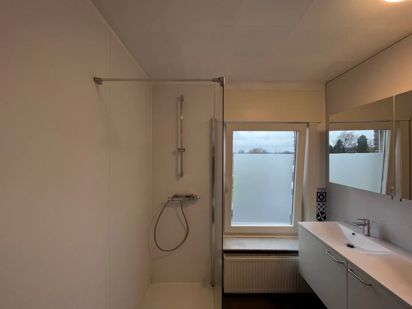 Op de verdieping bevinden zich vier (slaap)kamers (waarvan drie volwaardige, en één bureel/hobbykamer), een badkamer en een vestiairekast.