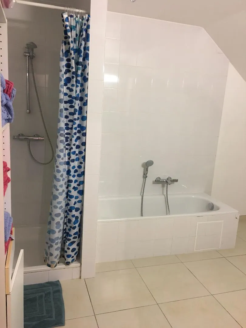 De badkamer beschikt zowel over een douche als over een afzonderlijk bad.