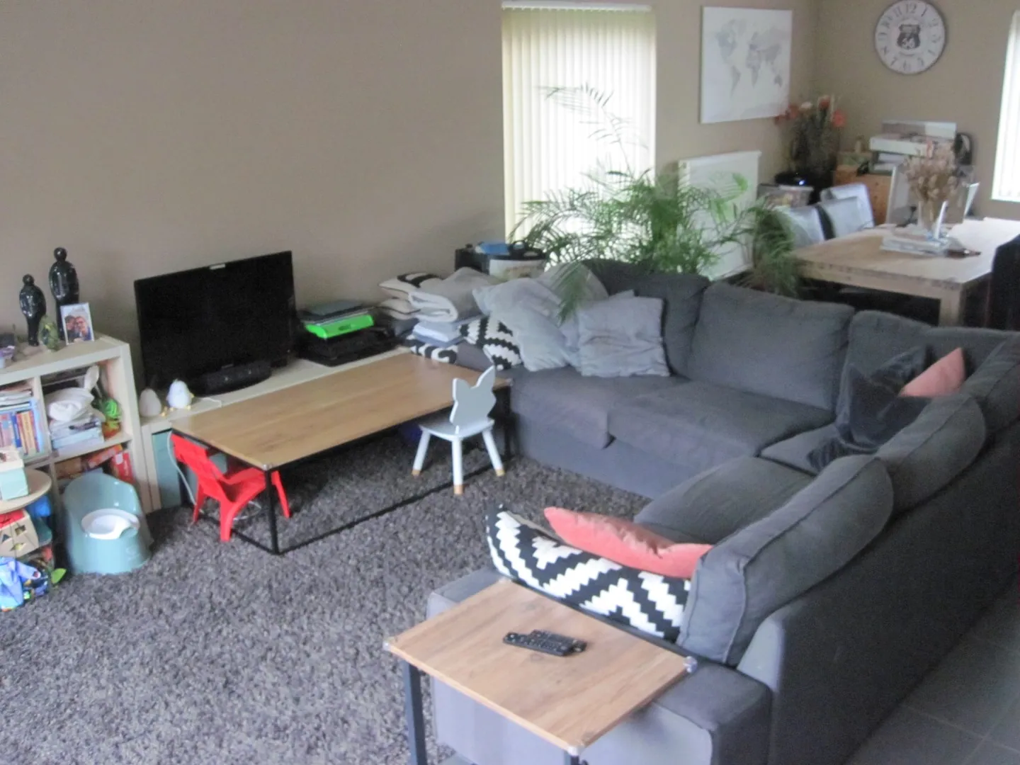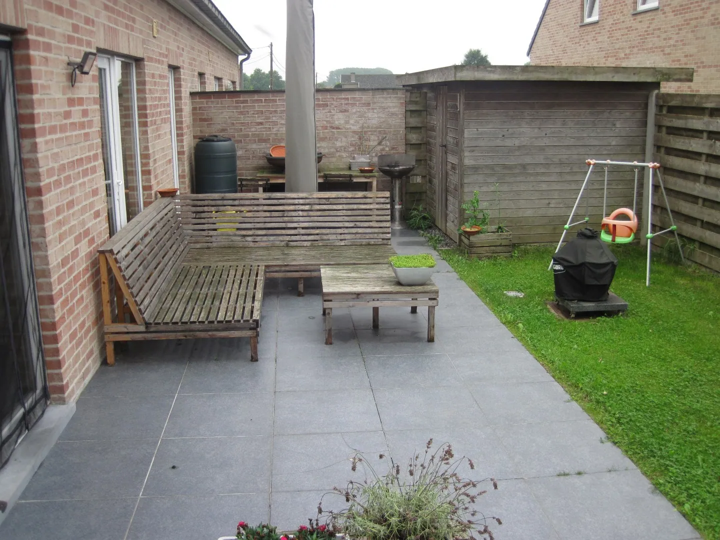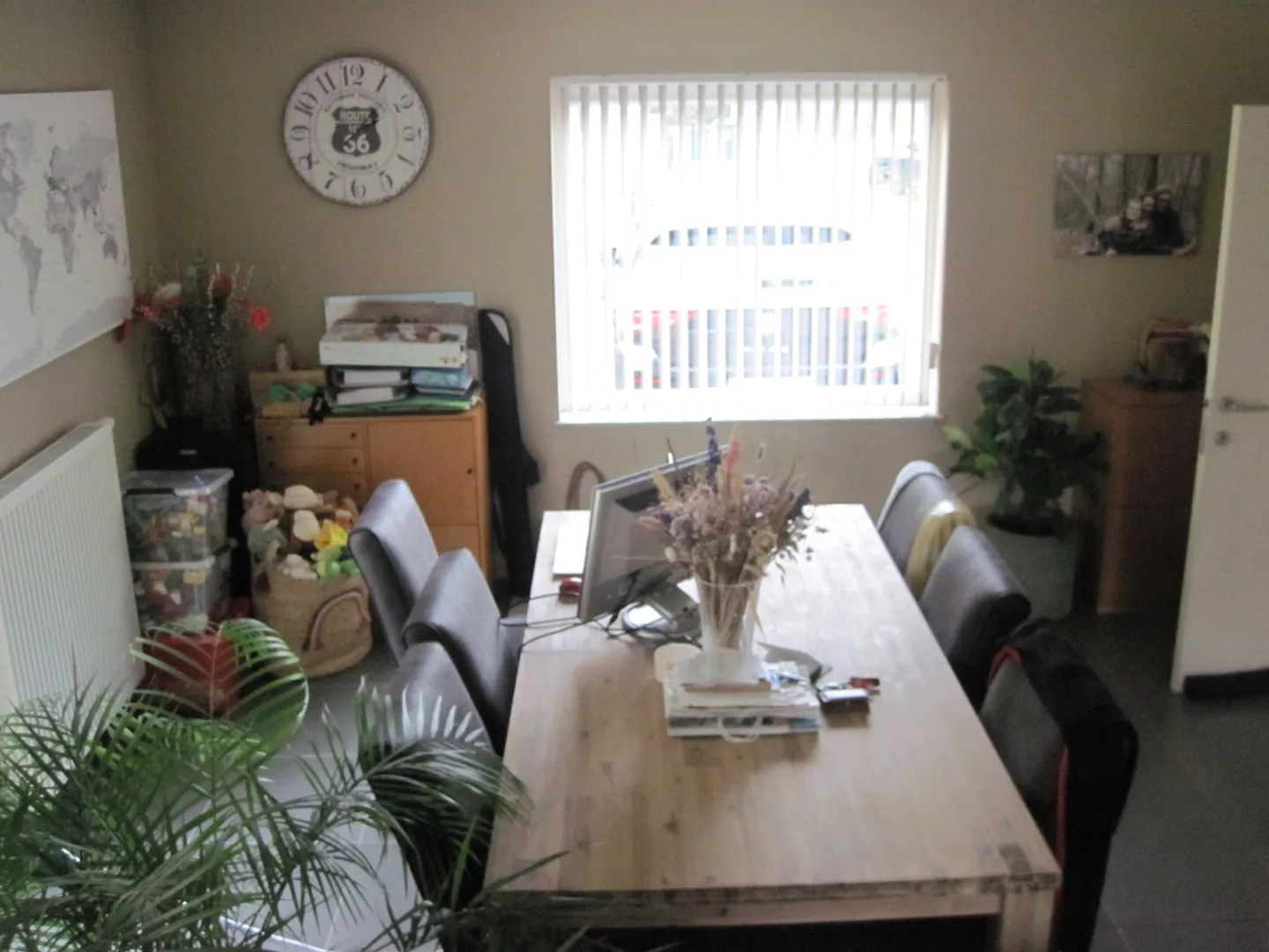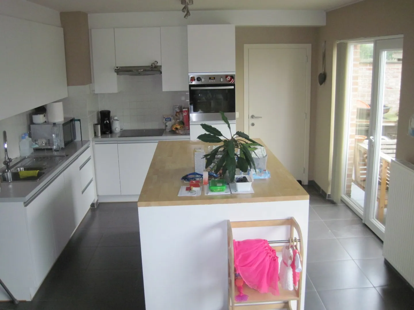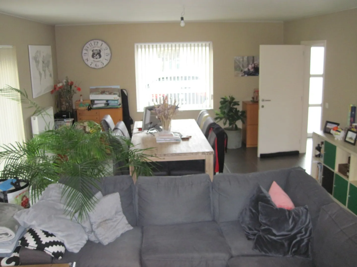 Van uit de leefruimte heeft u zicht over de grote, aangename tuin inclusief terras.