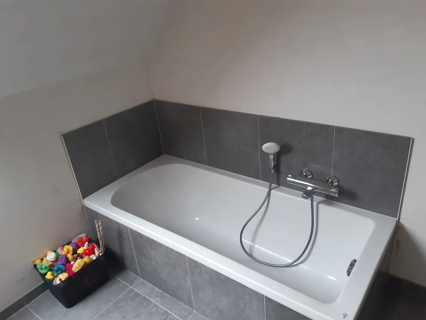 De verdieping telt 3 slaapkamers, een praktische badkamer (met bad en douche) en een afzonderlijk toilet.