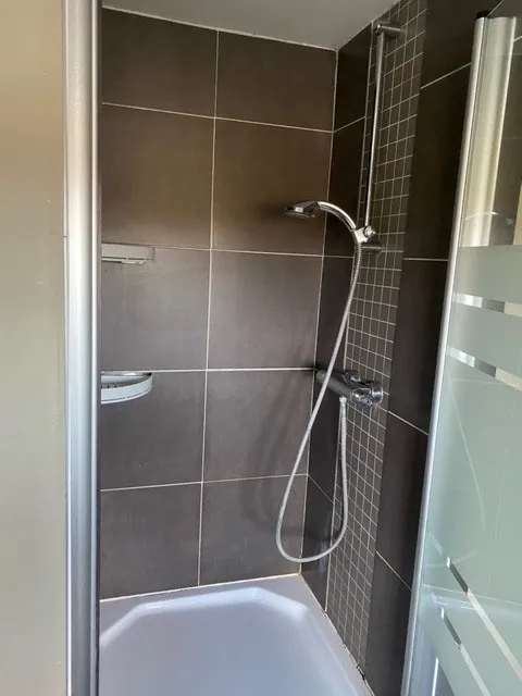 Op de eerste verdieping is er een grote slaapkamer met aparte dressing, en een badkamer met bad en douche.
