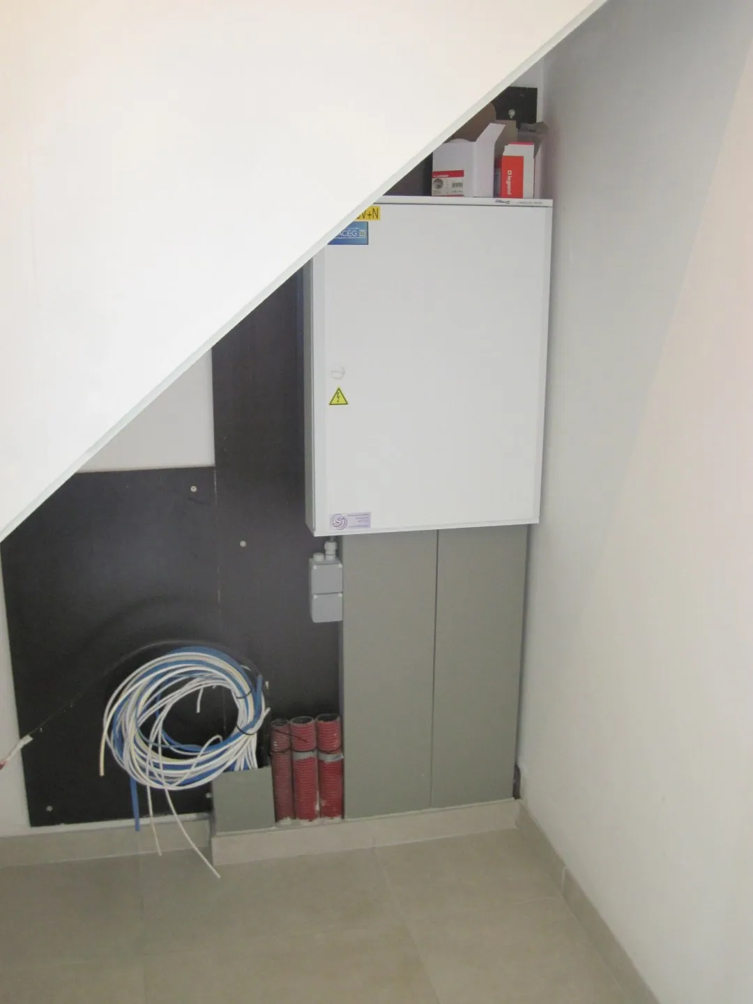 De technische degelijkheid is een bijzondere troef : verwarming d.m.v. een warmtepomp (met mogelijkheid tot koelen in de zomer op beide slaapkamers én in de leefruimte; vloerverwarming op het gelijkvloers niveau); zonnepanelen aanwezig; elektriciteitsteller dubbel tarief; regenwaterrecuperatie; zonnewering voorzien; ... .