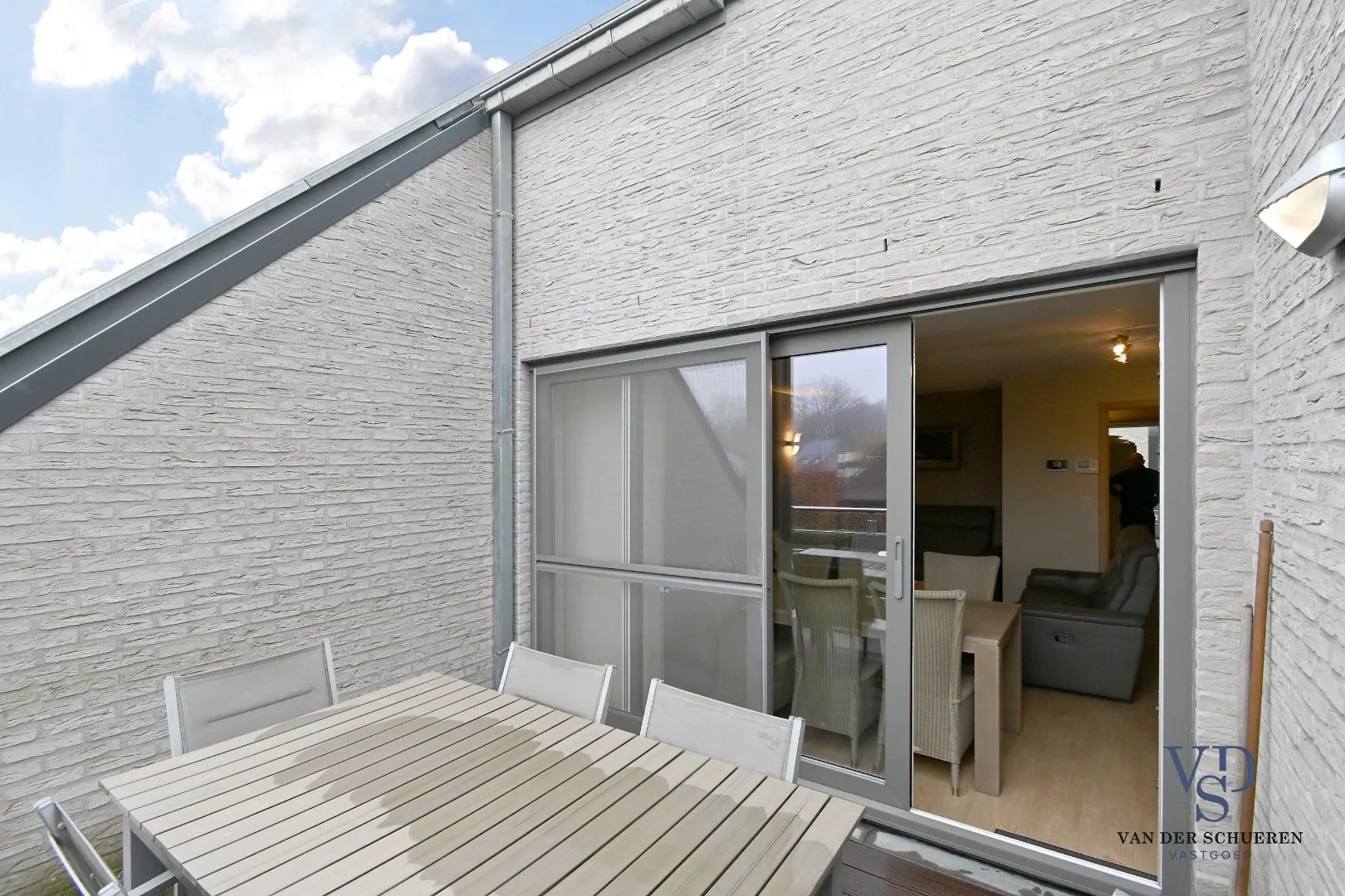 Het appartement is lichtrijk, praktisch ingedeeld en biedt volgende ruimtes: een inkomhal met gastentoilet, een lichtrijke leefruimte met eetplaats en een half-open keuken. Via de leefruimte heeft u toegang tot het terras. Verder beschikt het appartement over twee comfortabele slaapkamers en een badkamer. De ingemaakte kasten zijn bijzondere troeven.
