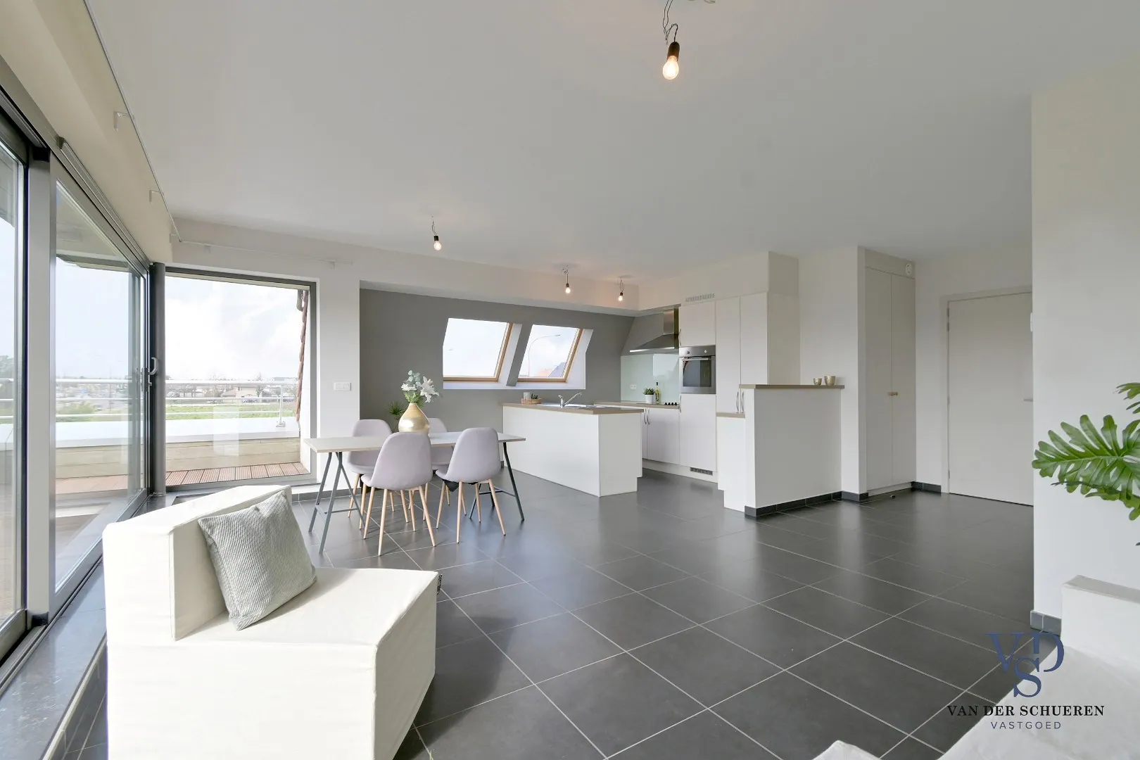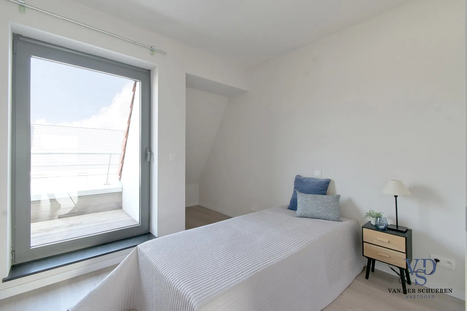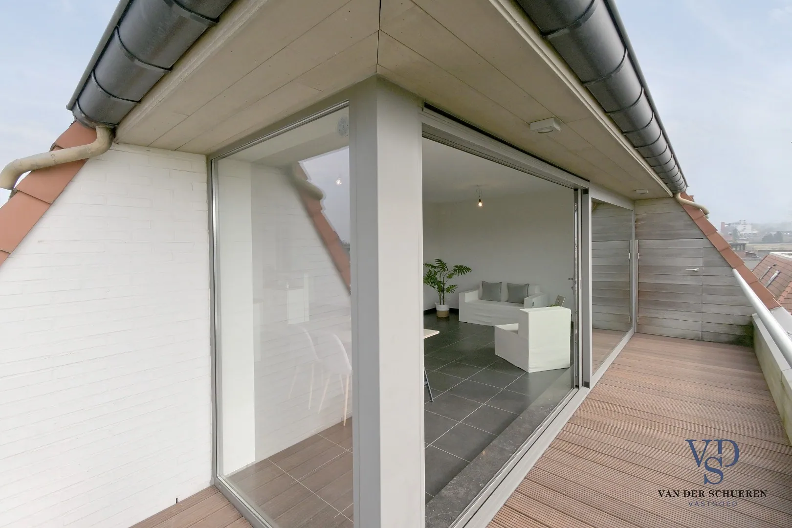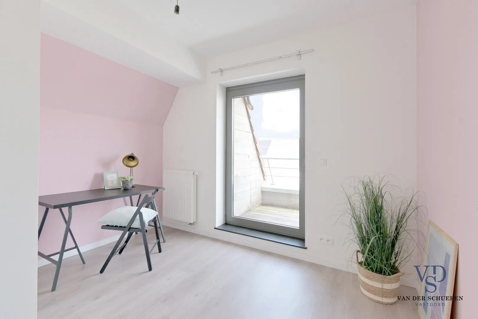 Dit appartement op de tweede verdieping kenmerkt zich door een aangename lichtinval, waardoor de twee terrassen maximaal tot hun recht komen.