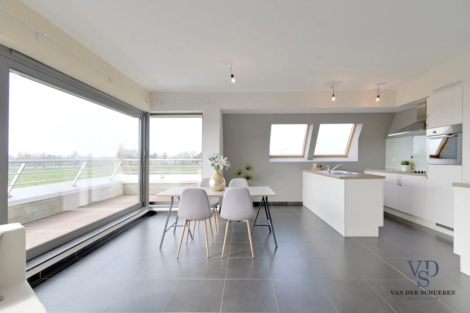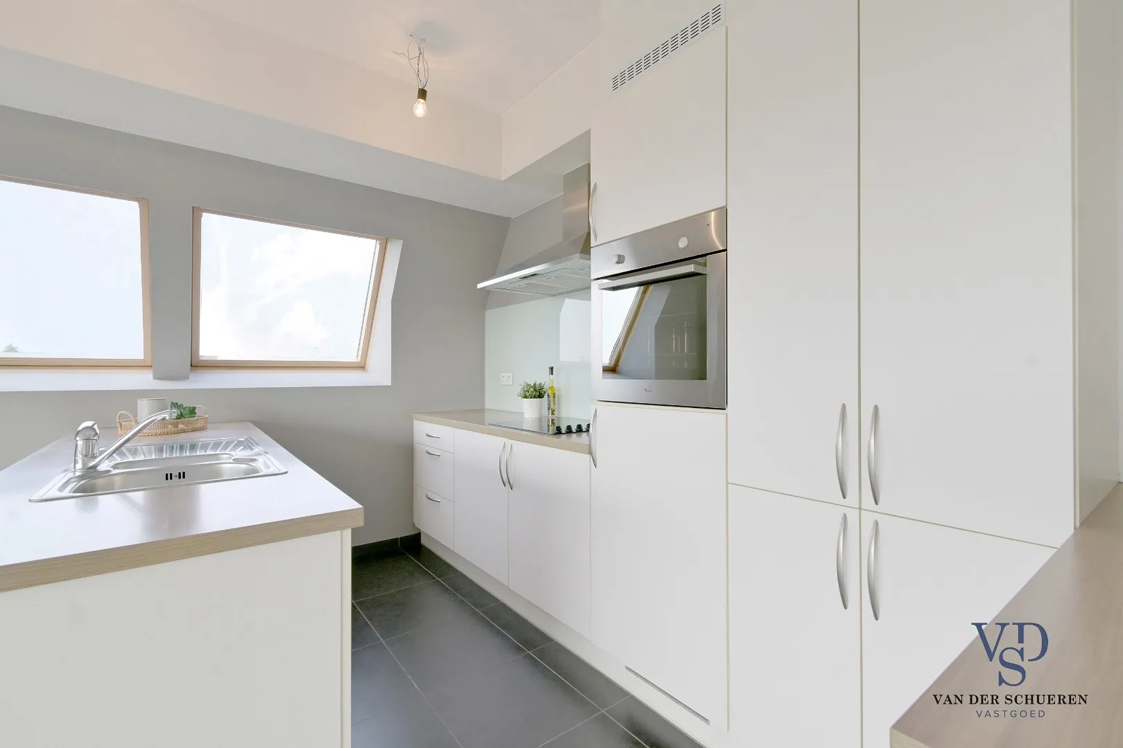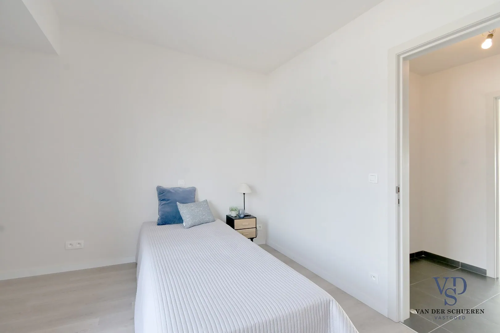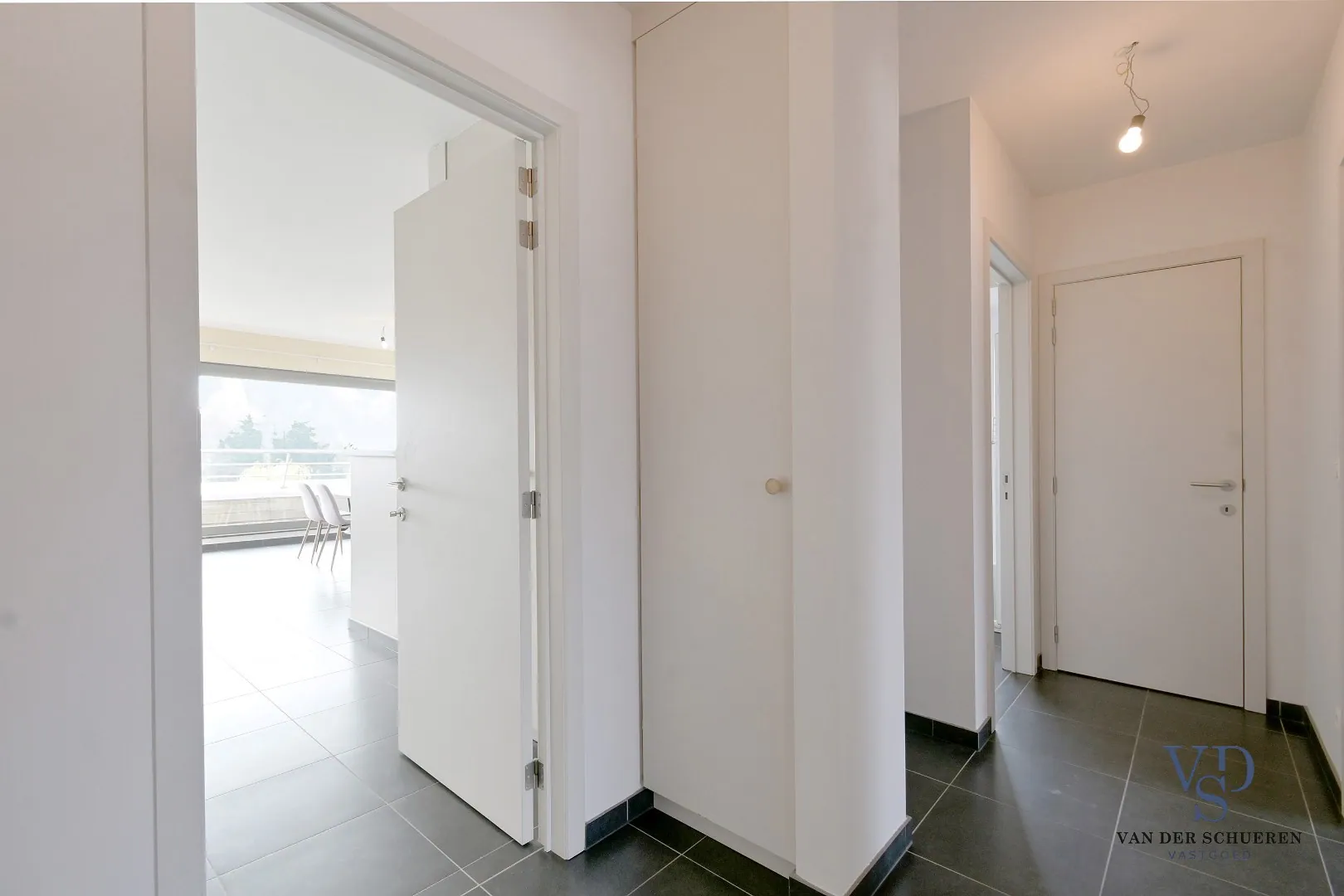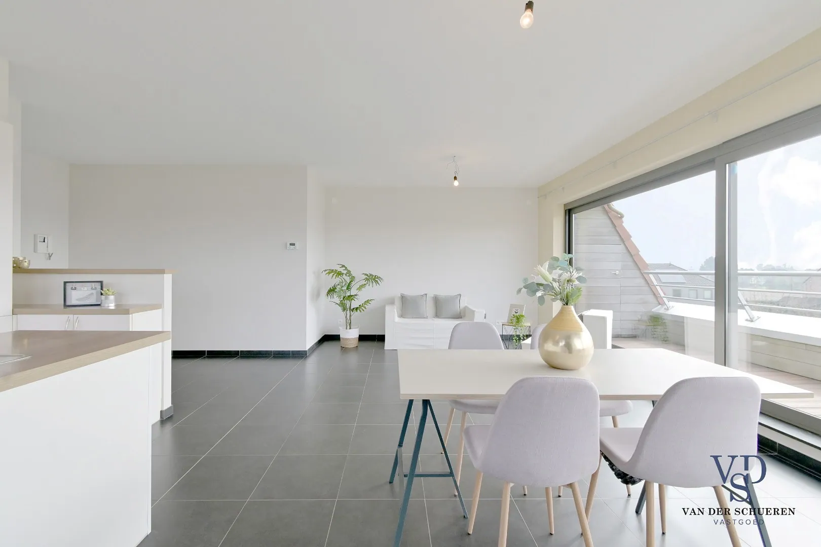 Dit appartement op de tweede verdieping kenmerkt zich door een aangename lichtinval, waardoor de twee terrassen maximaal tot hun recht komen.