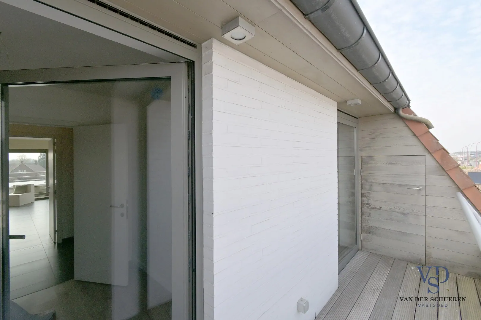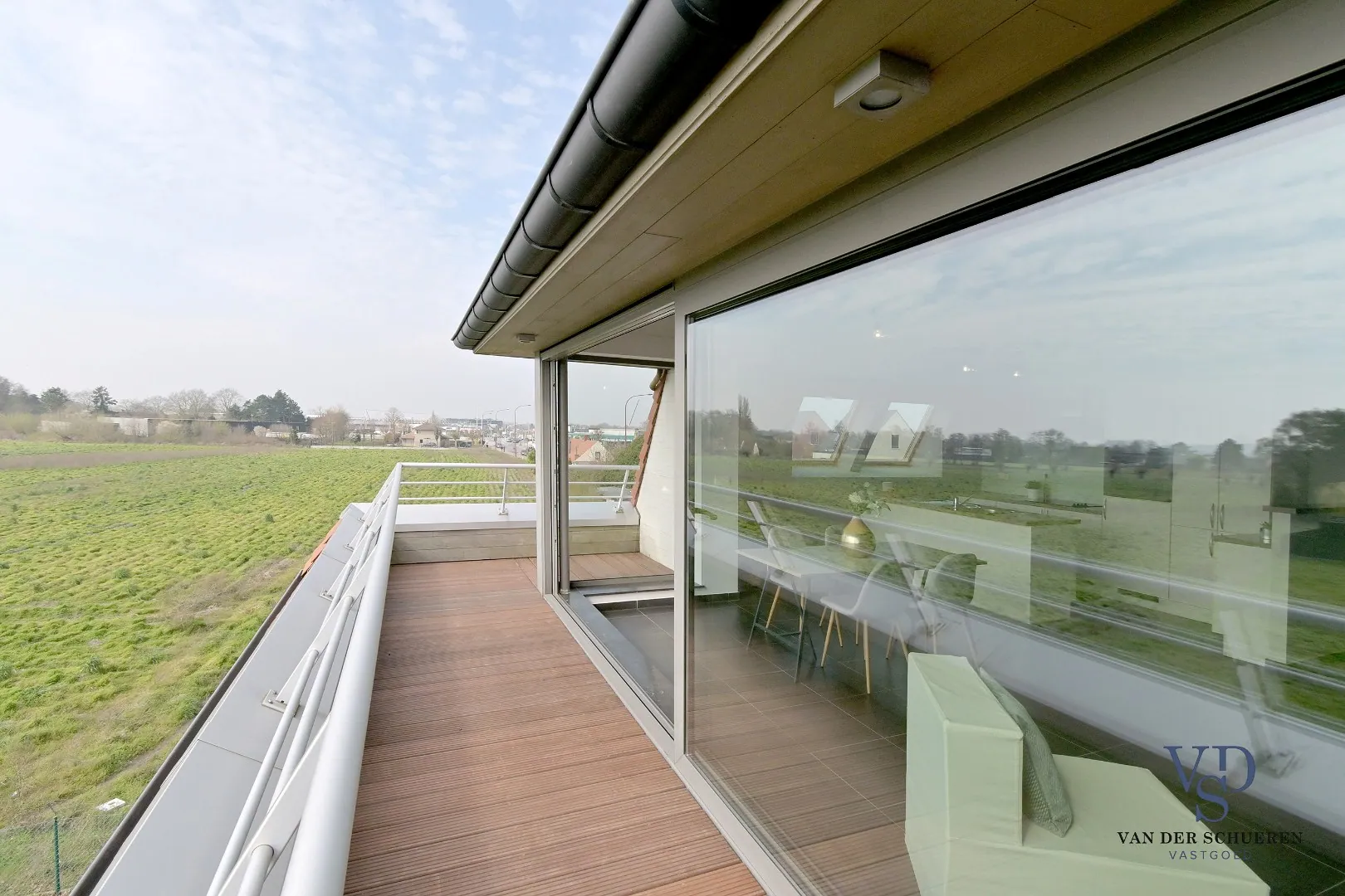 Bijzondere troeven zijn natuurlijk de ruime ondergrondse garage, de privatieve kelderberging, twee terrassen, waaronder een uitzonderlijk groot zuid-west gericht terras, ... .