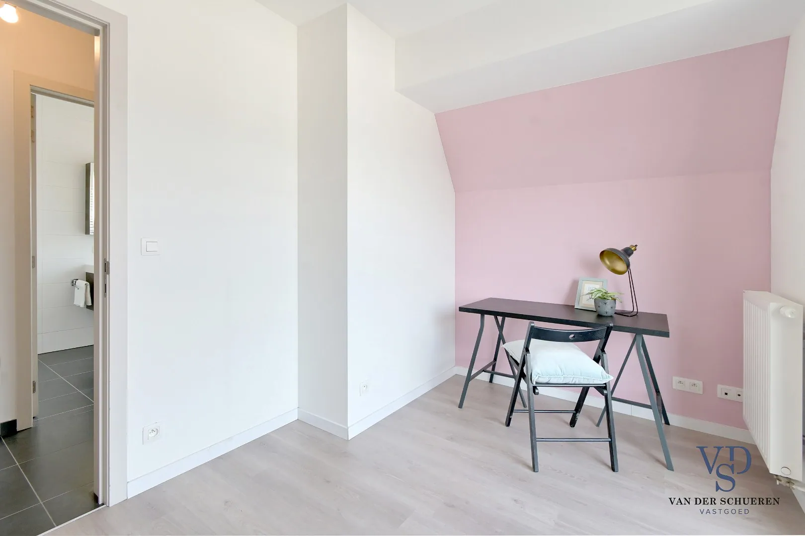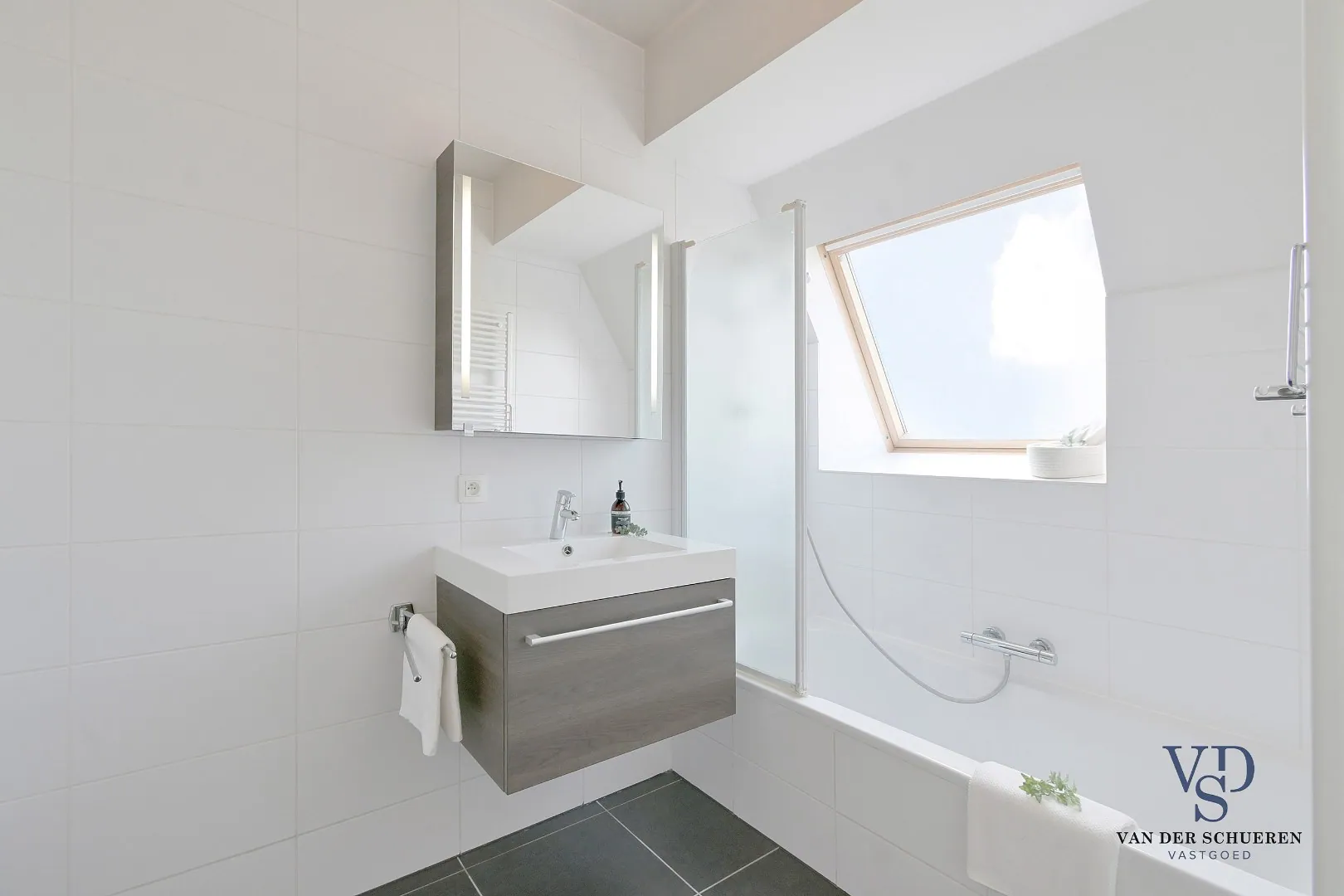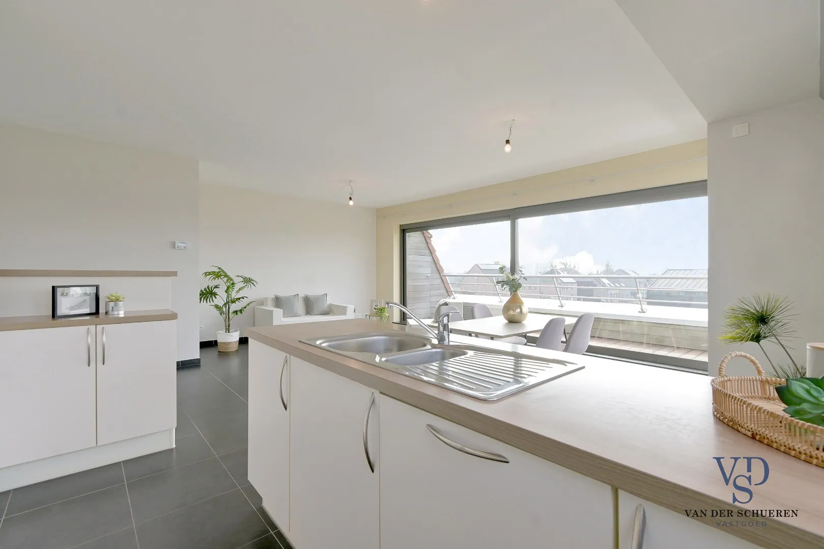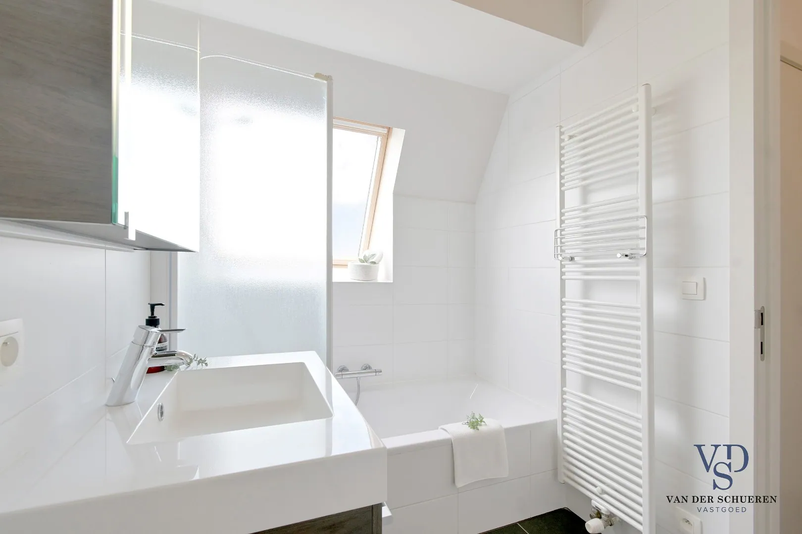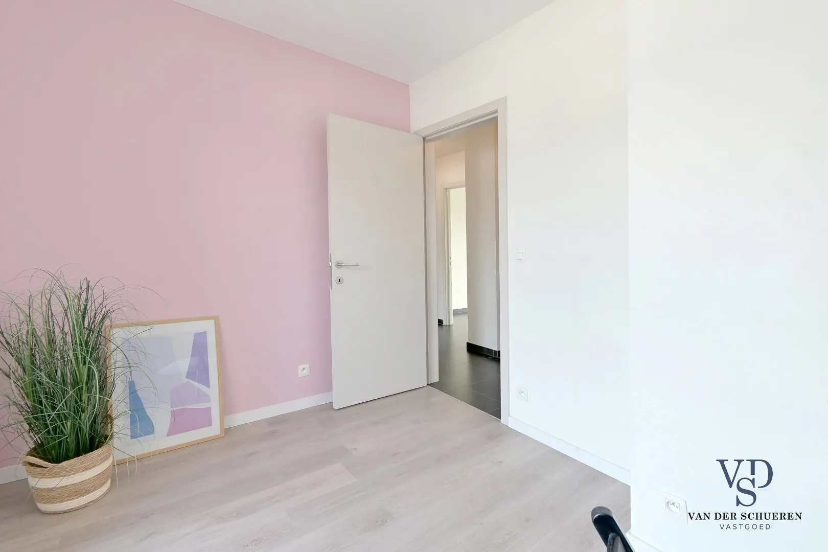Ruime leefruimte met open keuken. 2 slaapkamers. Praktische badkamer, afzonderlijk gastentoilet en aparte hoek voor de wasmachine en droogkast.