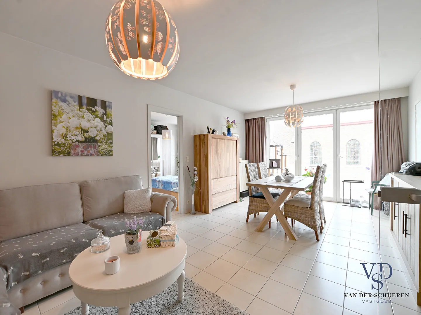Dit aangenaam 1 slaapkamer appartement (68 m² bewoonbare oppervlakte) beschikt over een inkomhal met gastentoilet, leefruimte, ruime -afzonderlijke- keuken met berging, slaapkamer en badkamer.