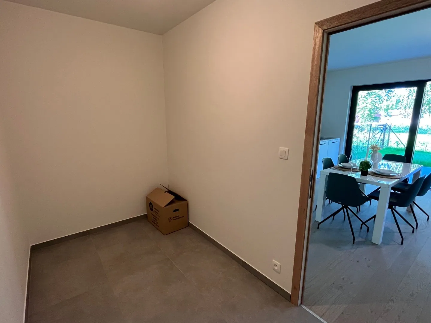Het omvat een inkomhal, een lichtrijke leefruimte met open keuken en aansluitende berging, een badkamer, kleine wasplaats en twee slaapkamers. Buiten geniet u van een terras en een tuin met prachtig uitzicht op het achterliggende park โ de ideale plek om tot rust te komen.