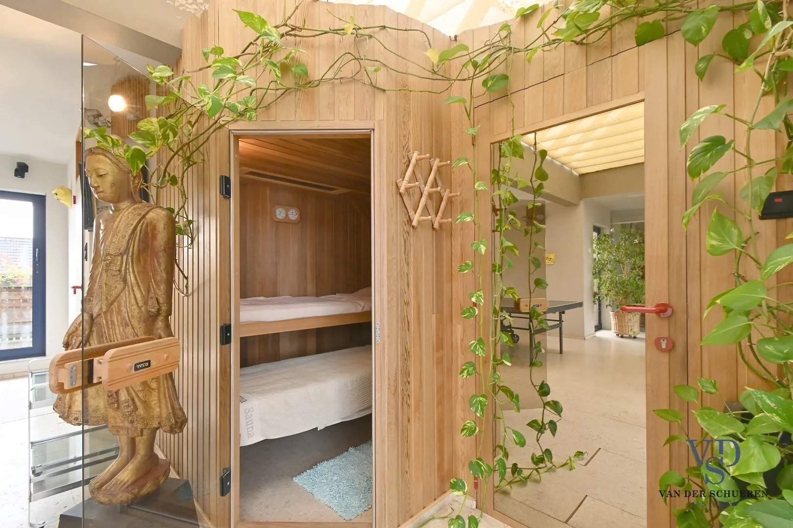 Als kers op de taart is er een wellnessruimte met spa-hoek en sauna, perfect om na een drukke werkdag volledig tot rust te komen. Zowel aan de voorzijde als aan de achterzijde van het gebouw bevinden zich ruime terrassen, ideaal om te genieten van de zon of het uitzicht op de tuin met vijver.