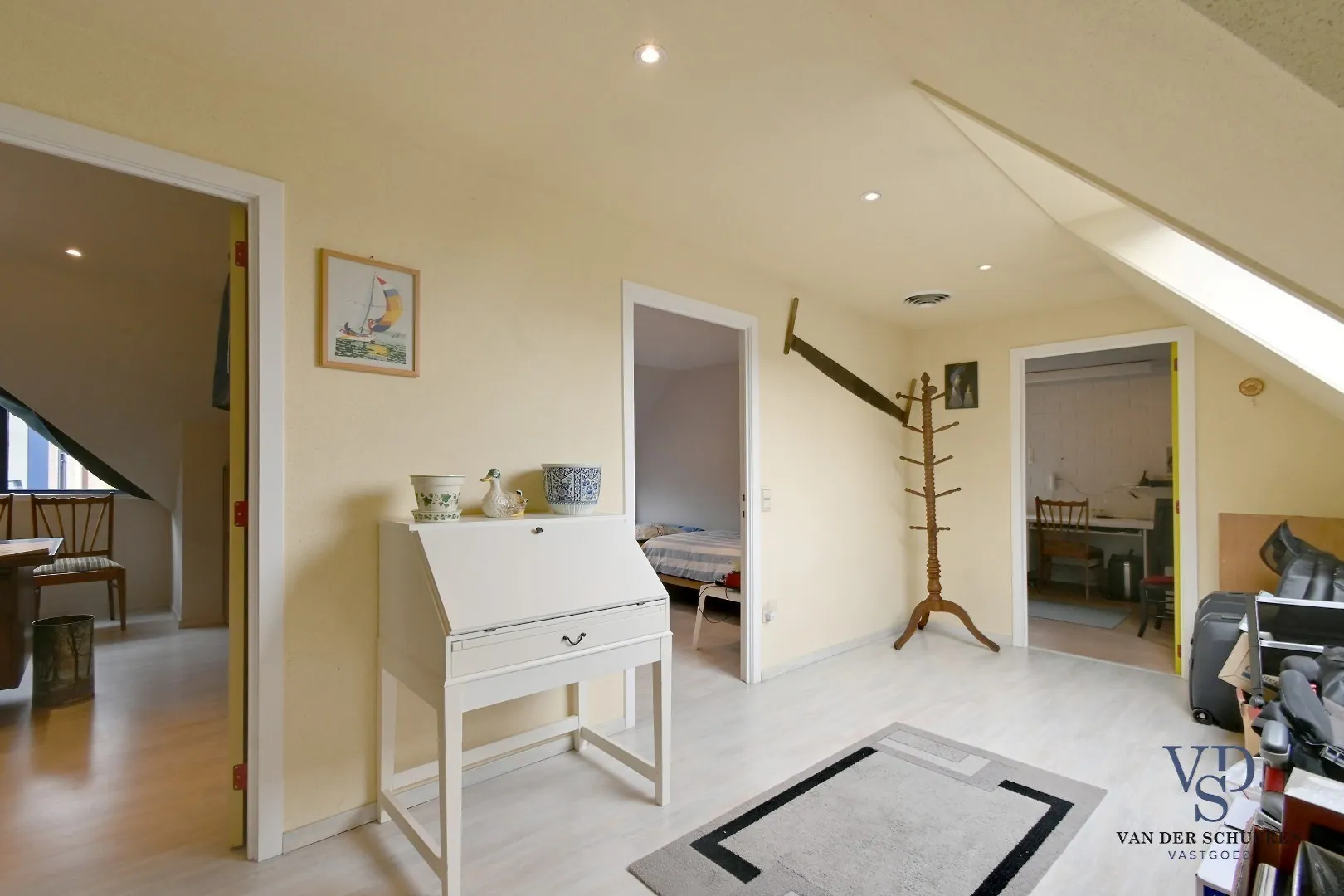 Ook op de bovenverdieping is er meer dan voldoende bergruimte, dankzij de aanwezigheid van een atelier, een praktische opslagruimte en zolders aan beide kanten van het gebouw.