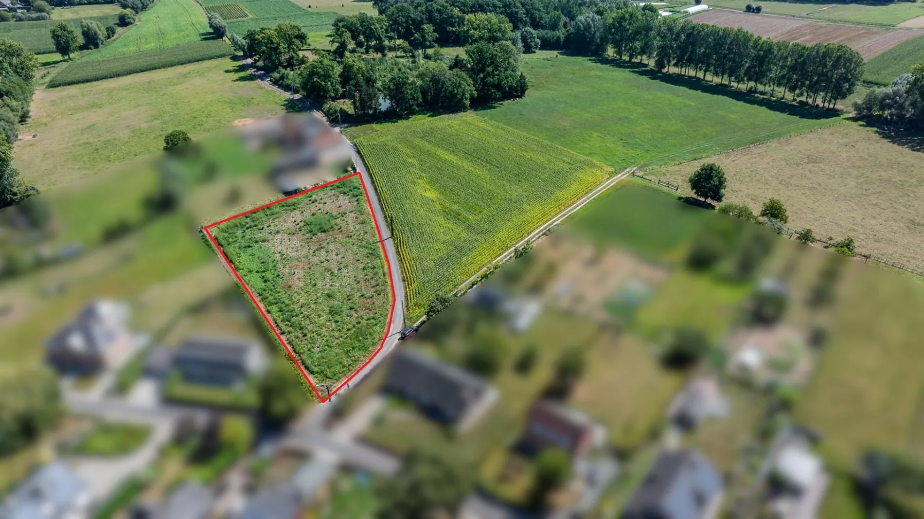 Op de grens van Michelbeke met Rozebeke treffen we dit uitzonderlijk perceel bouwgrond van 1.246 m² met aanpalend stuk grond van ca. 2800 m².