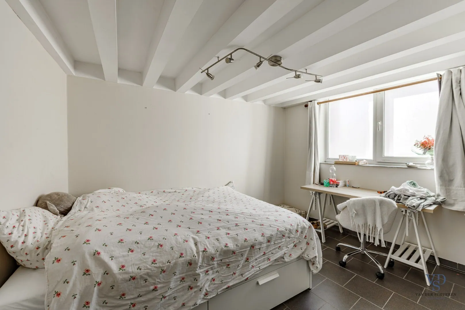 Er is tevens een (afzonderlijk verhuurde) studeerkamer aanwezig, alsook een buitenkoertje.