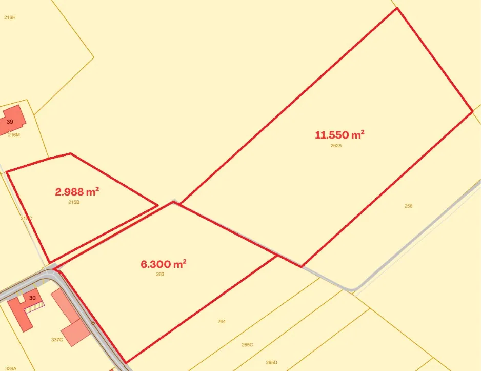 Perceel 263 heeft een oppervlakte van 𝟲.𝟯𝟬𝟬 𝗺².