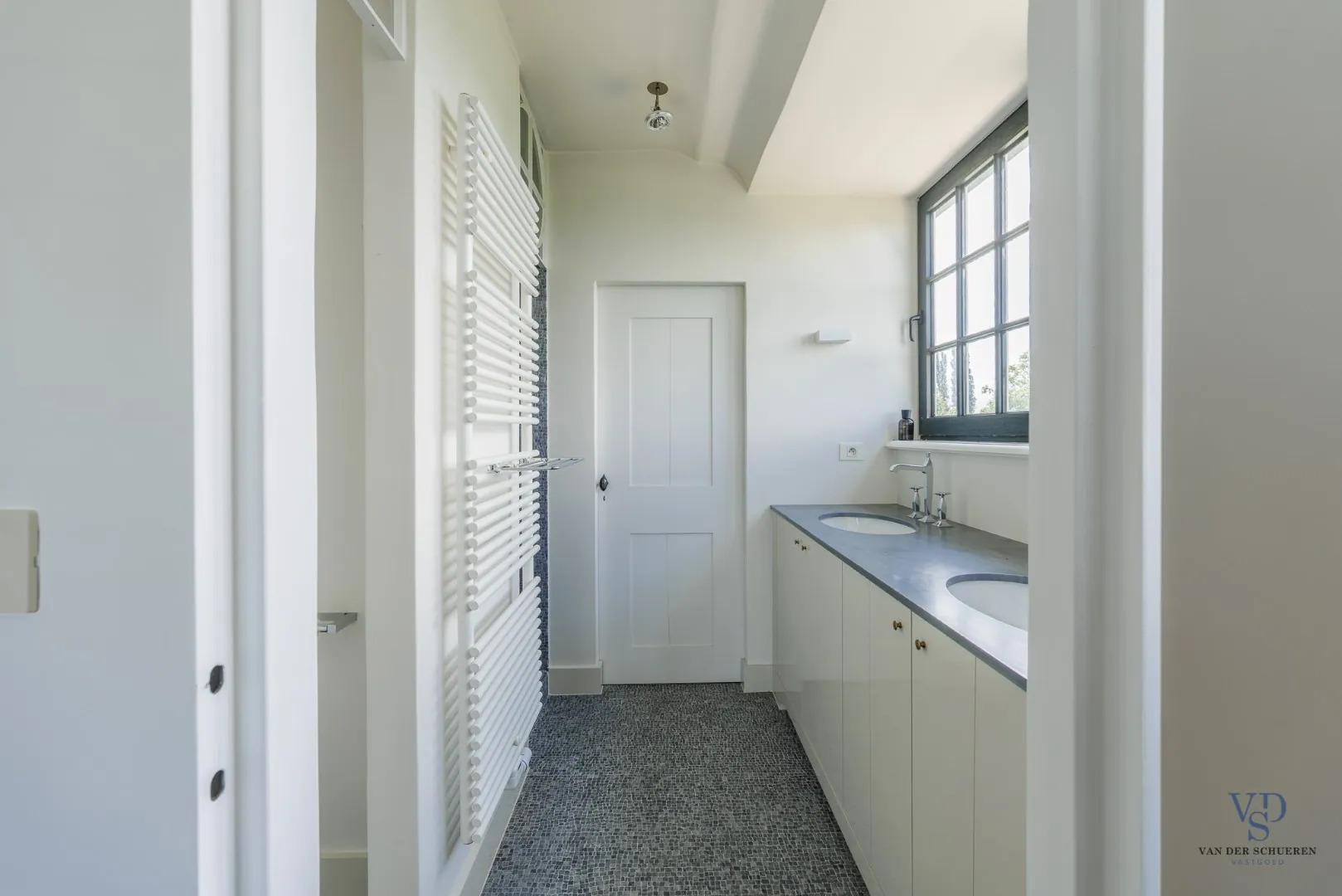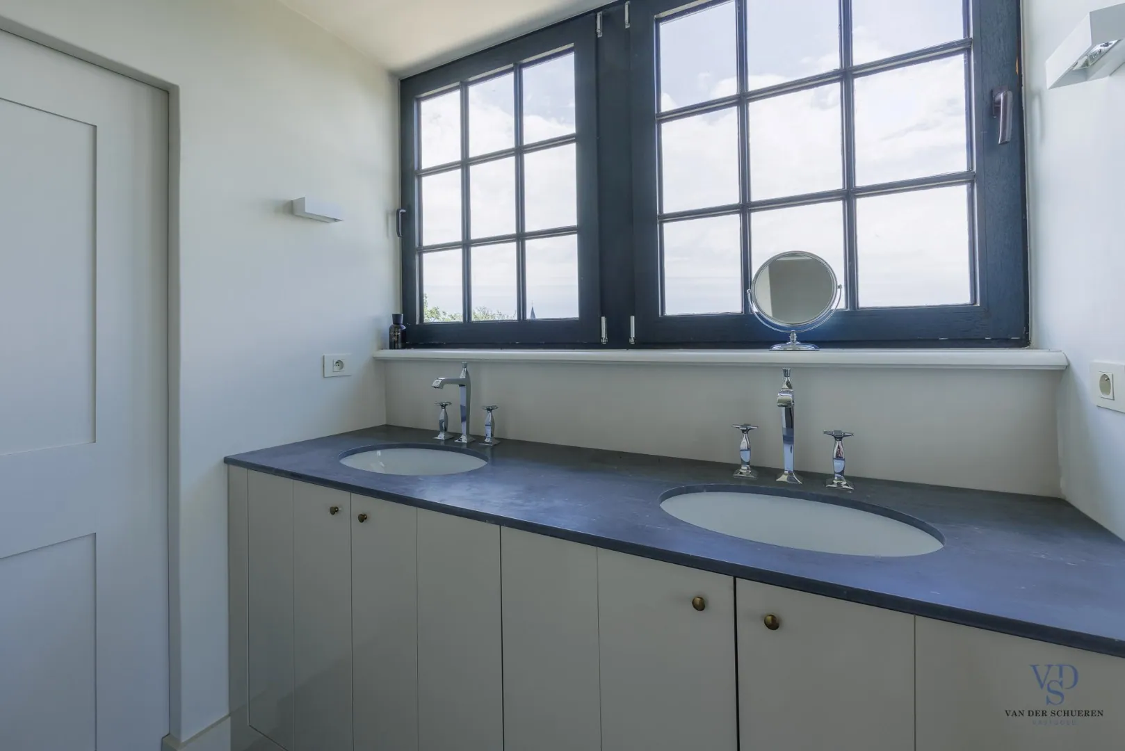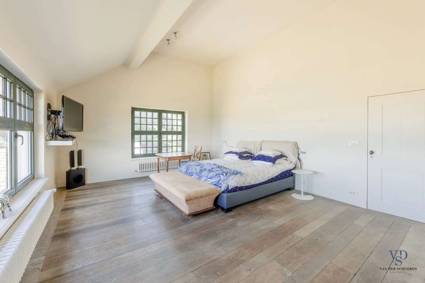 De stijlvolle trap leidt naar de eerste verdieping, waar drie volwaardige slaapkamers u ontvangen. De master bedroom beschikt over een dressing en een luxueuze, private badkamer (met bad, douche, dubbel lavabomeubel en toilet). De twee overige slaapkamers delen een tweede, hoogwaardig afgewerkte badkamer. Daarnaast is er nog een extra vestiaireruimte met geïntegreerde wastafel aanwezig.