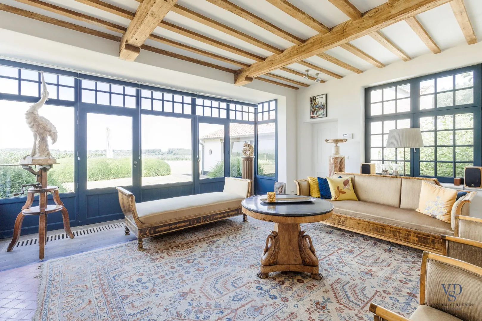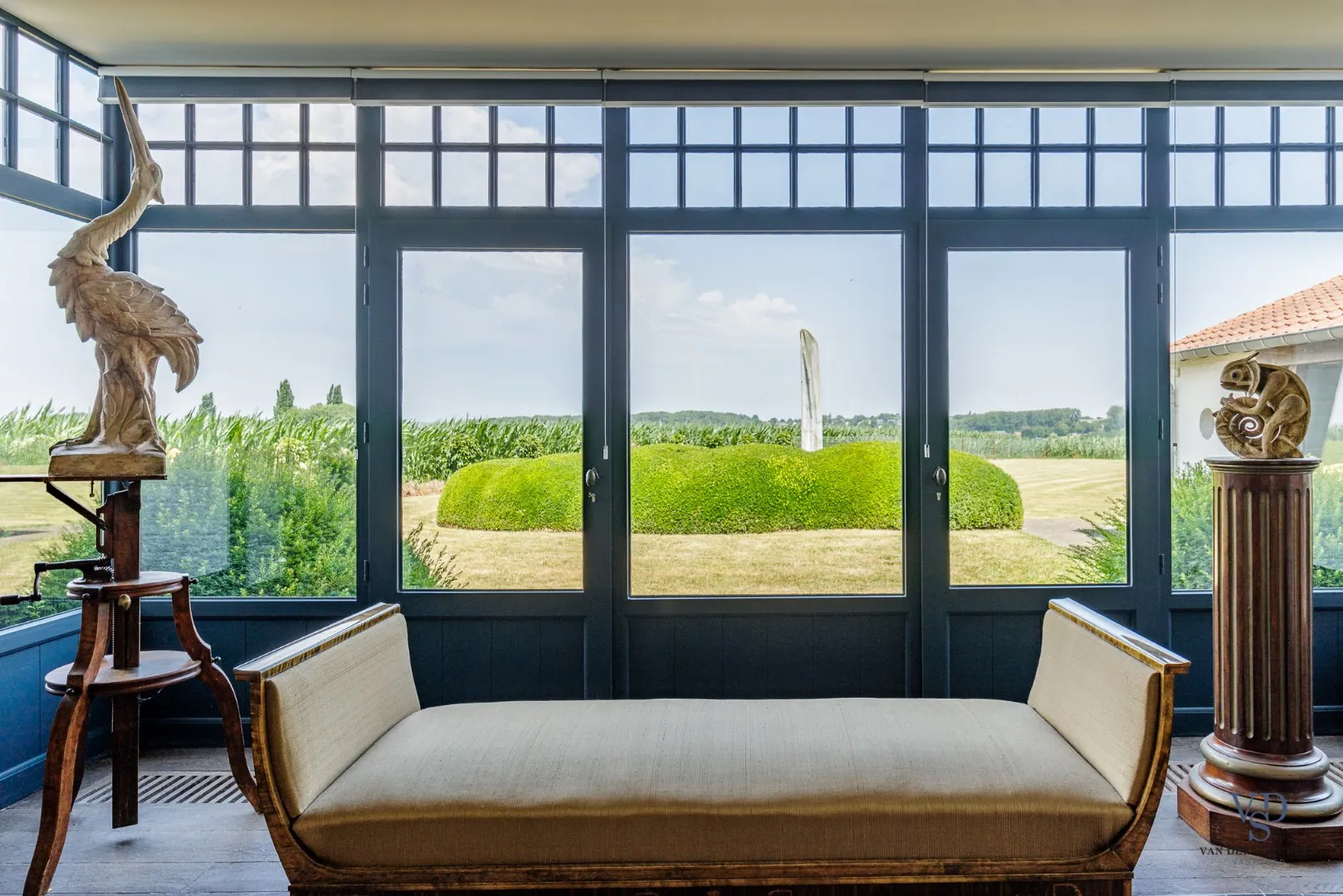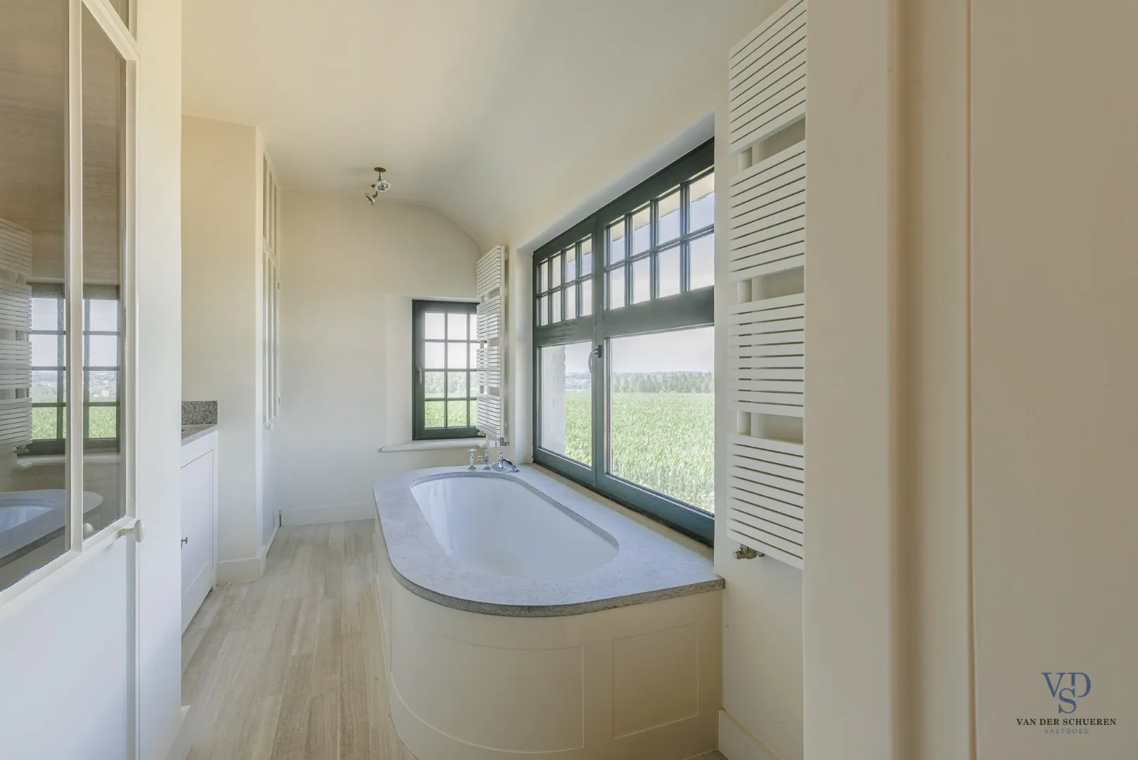 De eigendom geniet een uniek panoramisch uitzicht over agrarisch gebied, waardoor het open vergezicht blijvend gevrijwaard blijft.