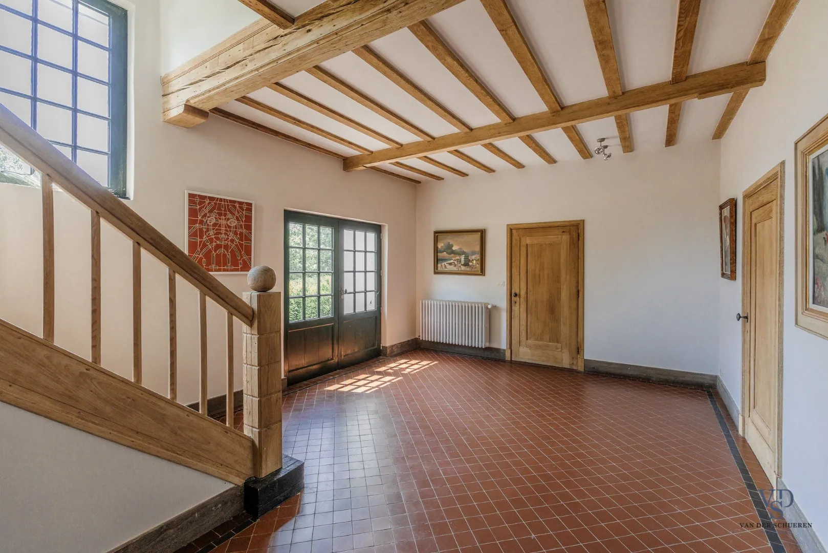 Bij binnenkomst wordt u verwelkomd in een statige inkomhal die meteen het karakter en de klasse van dit landhuis weerspiegelt.