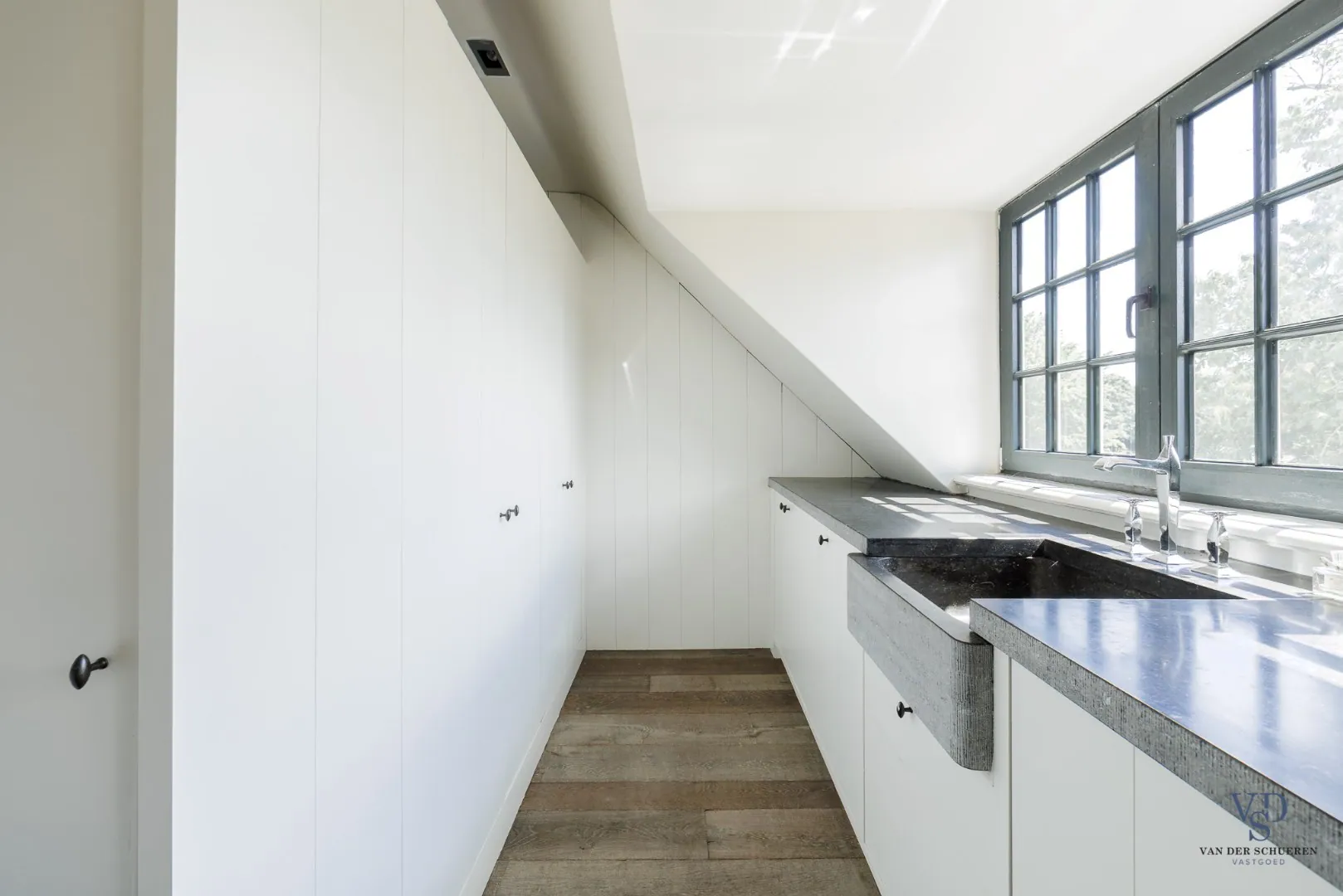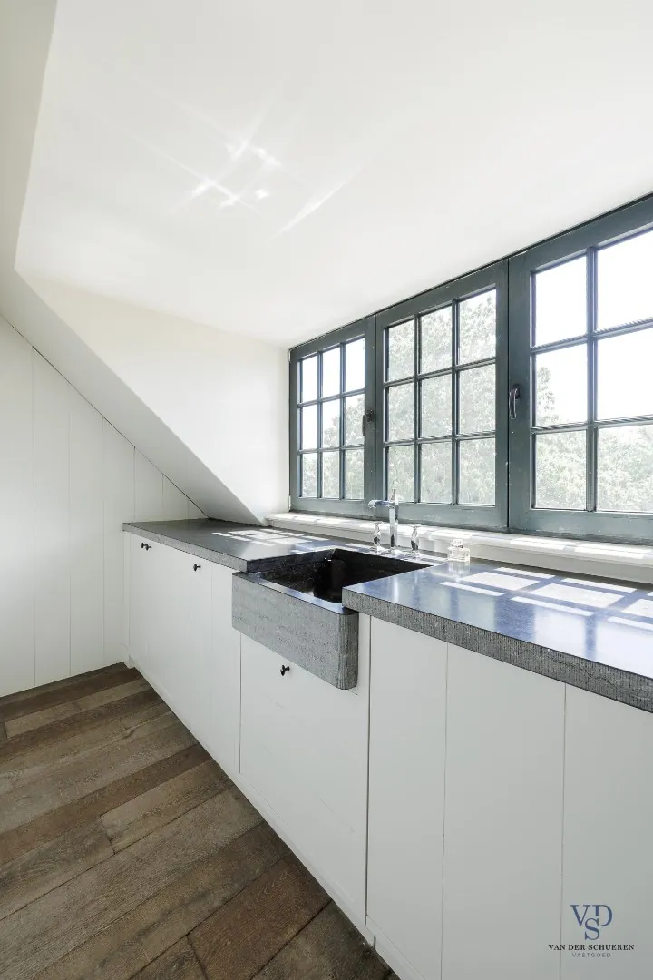 De woning beschikt tevens over een praktische kelder, toegankelijk vanuit de keuken, en een ruime zolderverdieping.