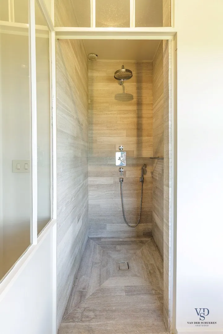 De buitenruimte is eveneens een waar pareltje: een smaakvol aangelegde tuin met oprijlaan, ruim zonneterras, een stijlvolle serre voorzien van een keukeneiland, een charmante wijngaard en een praktische tuinberging.