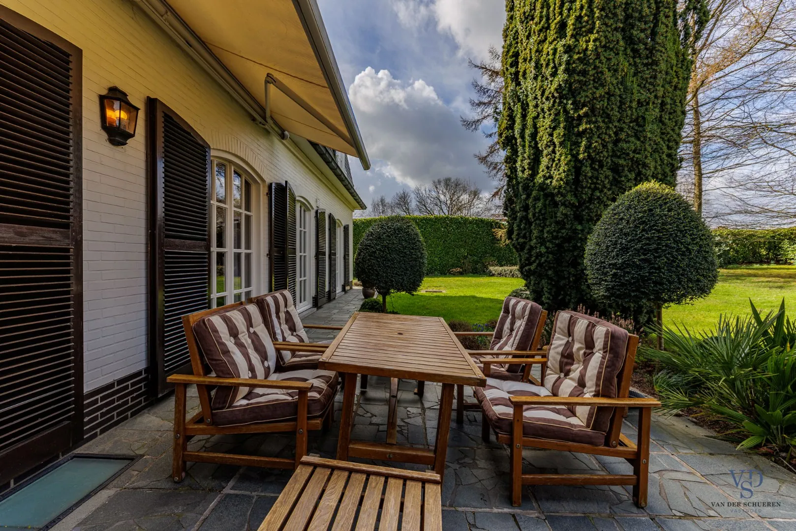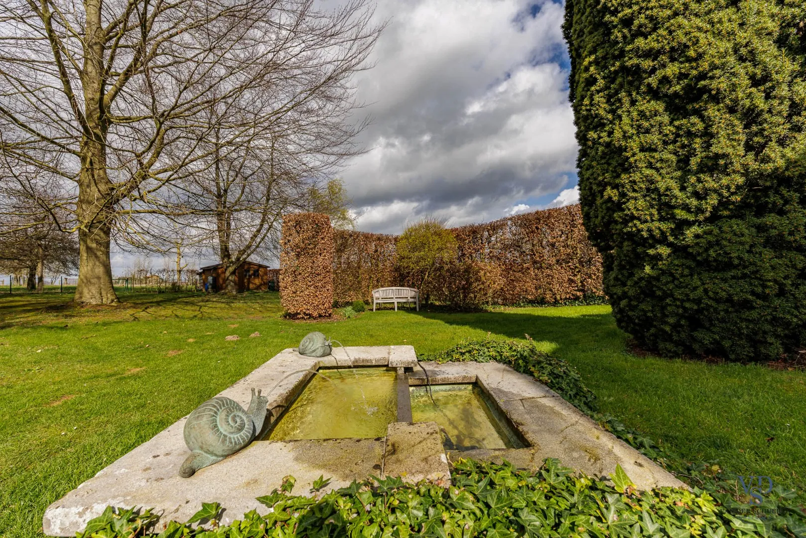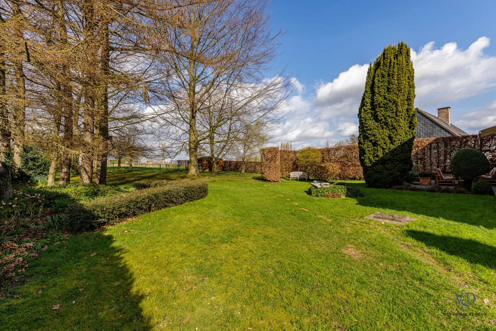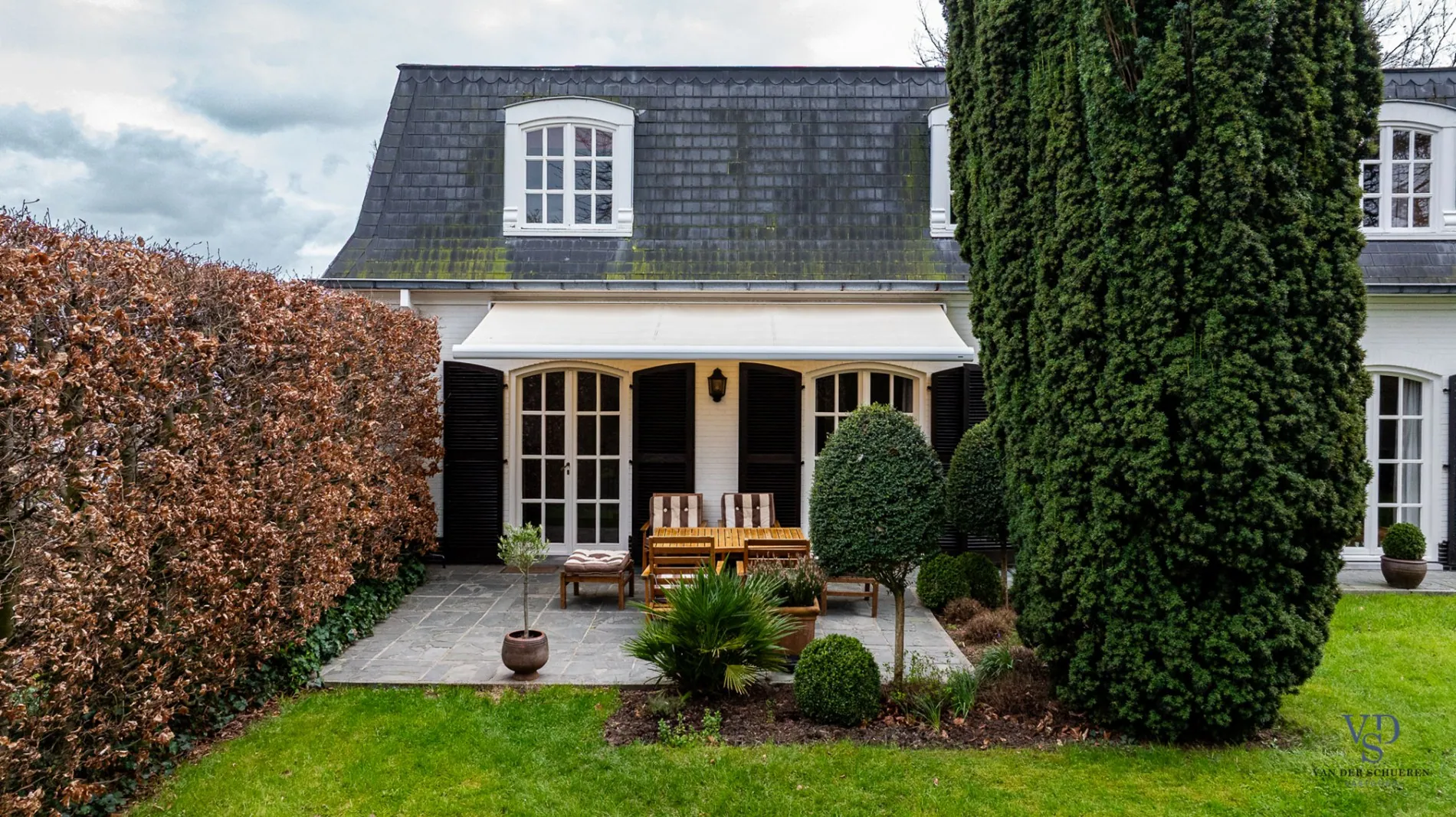 Buiten geniet u van een aangename tuin waar het heerlijk tot rust komen is. Het terras is uitgerust met een zonneluifel, ideaal om ook op warme dagen comfortabel buiten te vertoeven. Bovendien is er de mogelijkheid om het achtergelegen perceel van circa 1680 m² (zwart gearceerd op de laatste luchtfoto) optioneel bij aan te kopen; de arcering is louter indicatief en biedt geen enkele waarborg omtrent de exacte oppervlakte of afmetingen.