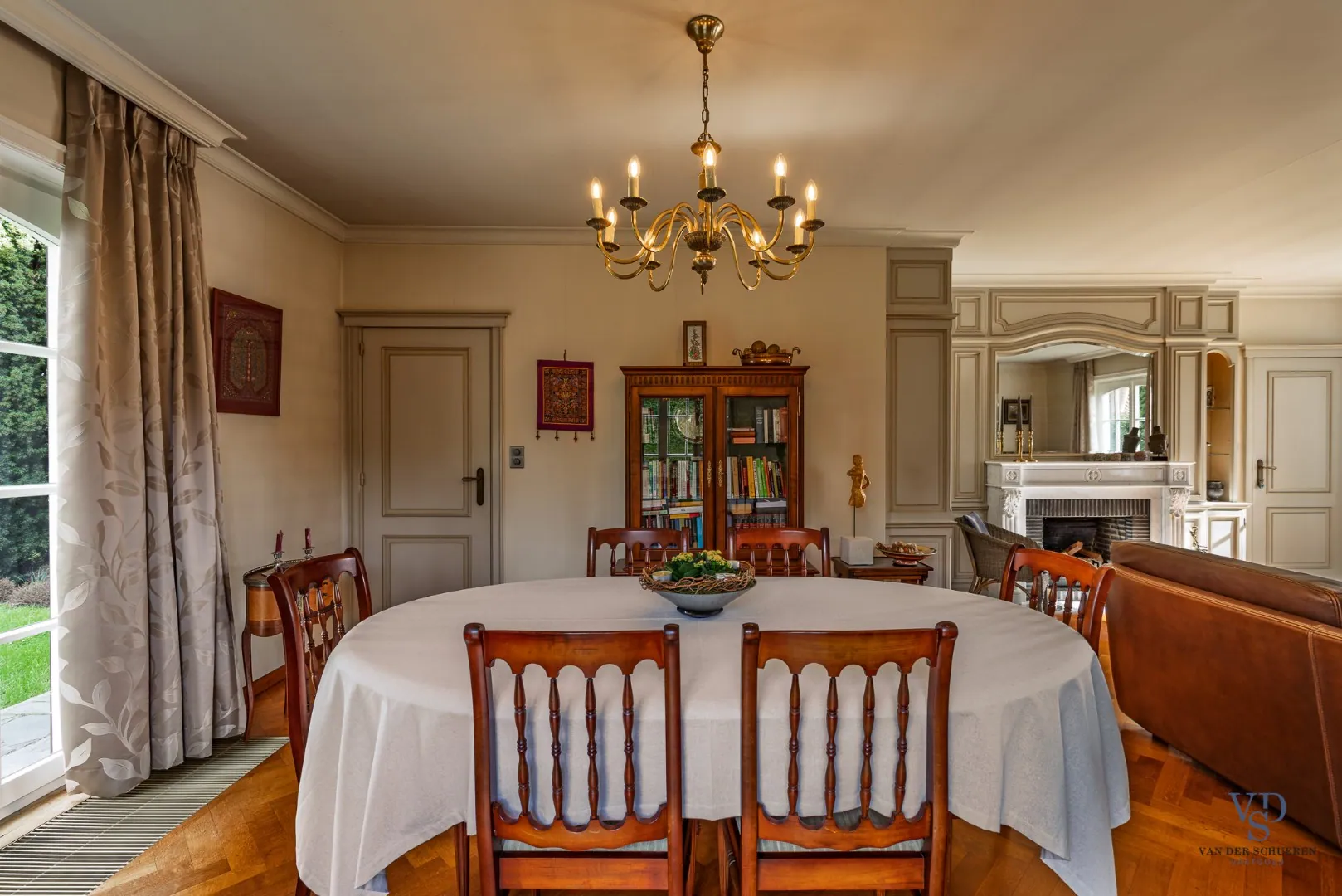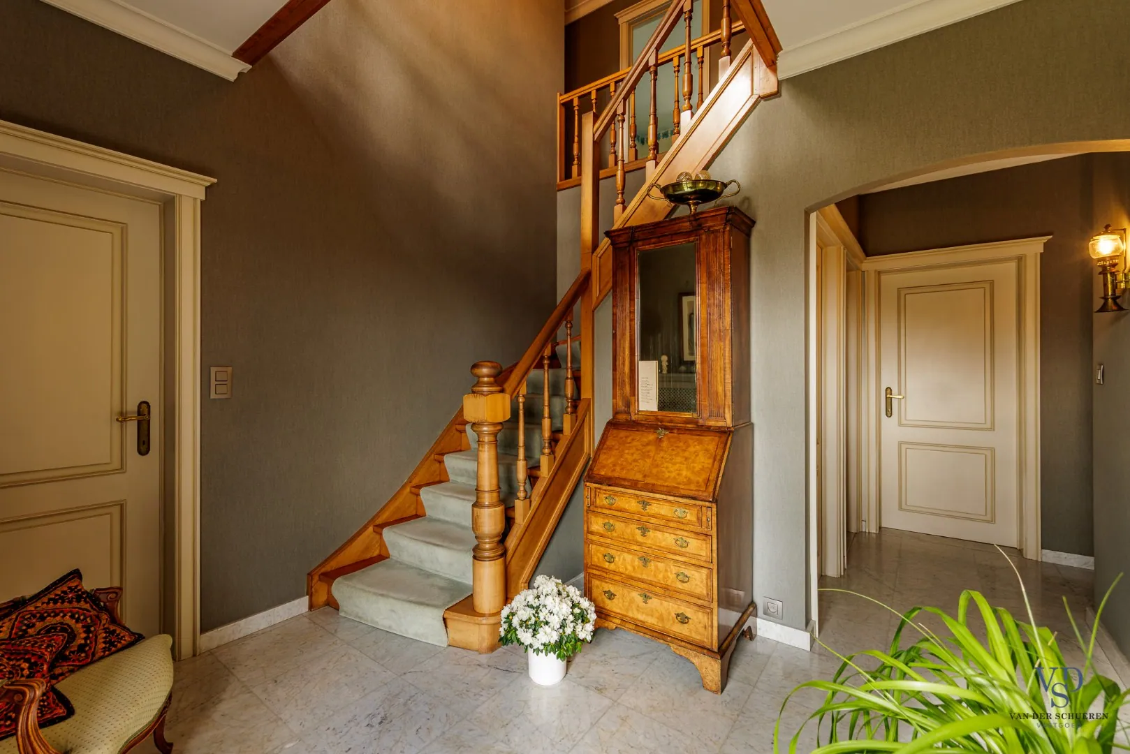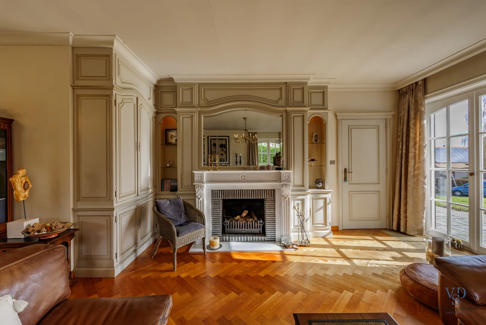 Deze karaktervolle Franse villa straalt charme en klasse uit vanaf het eerste moment. Via de statige inkomhal betreedt u de woning, waar authenticiteit en ruimtegevoel meteen samenkomen. De ruime, lichtrijke leefruimte met prachtig parket vormt het hart van de woning en biedt een warme en uitnodigende sfeer.