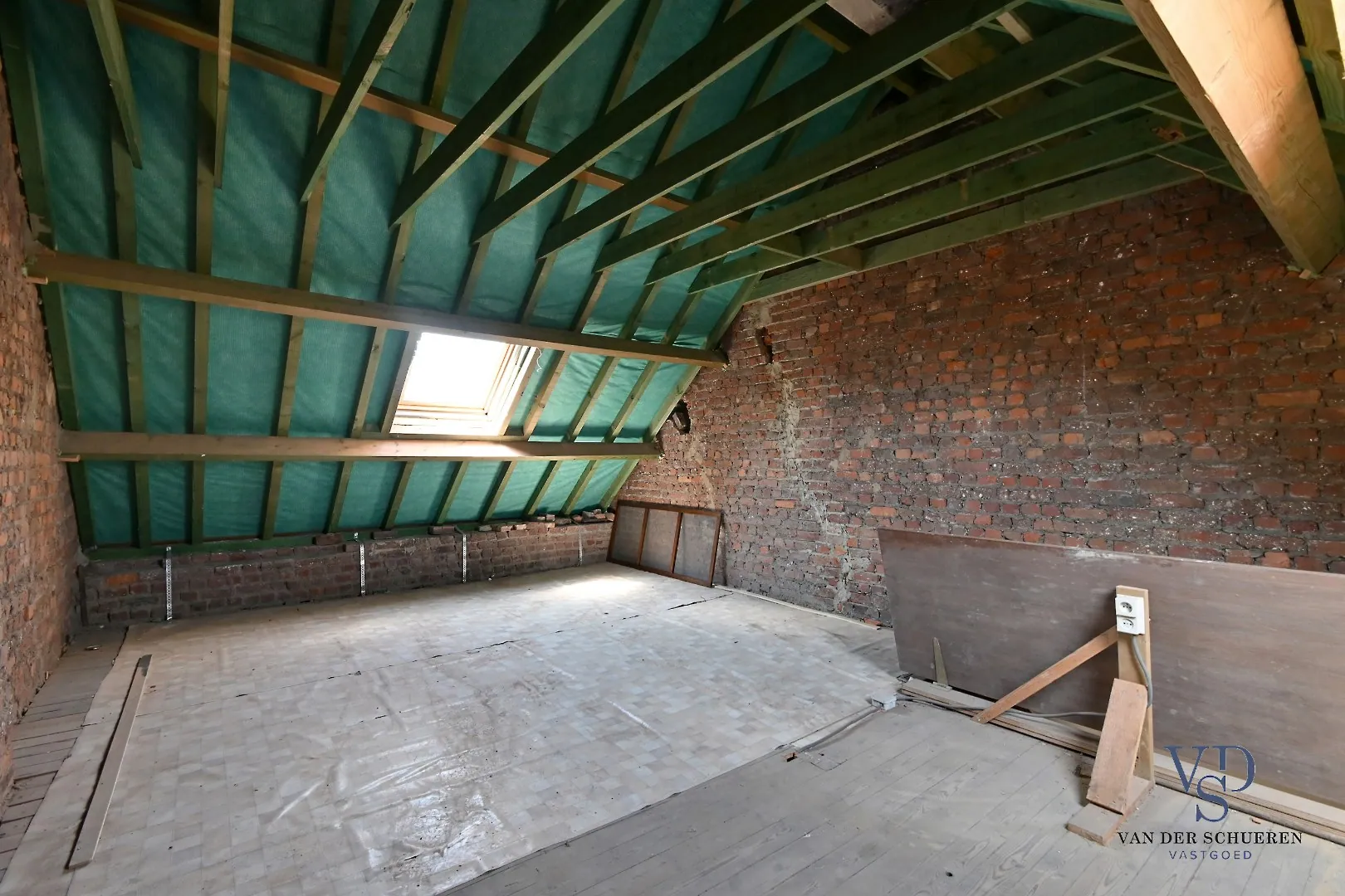 De zolderverdieping werd nog recentelijk voorzien van een nieuw dak.