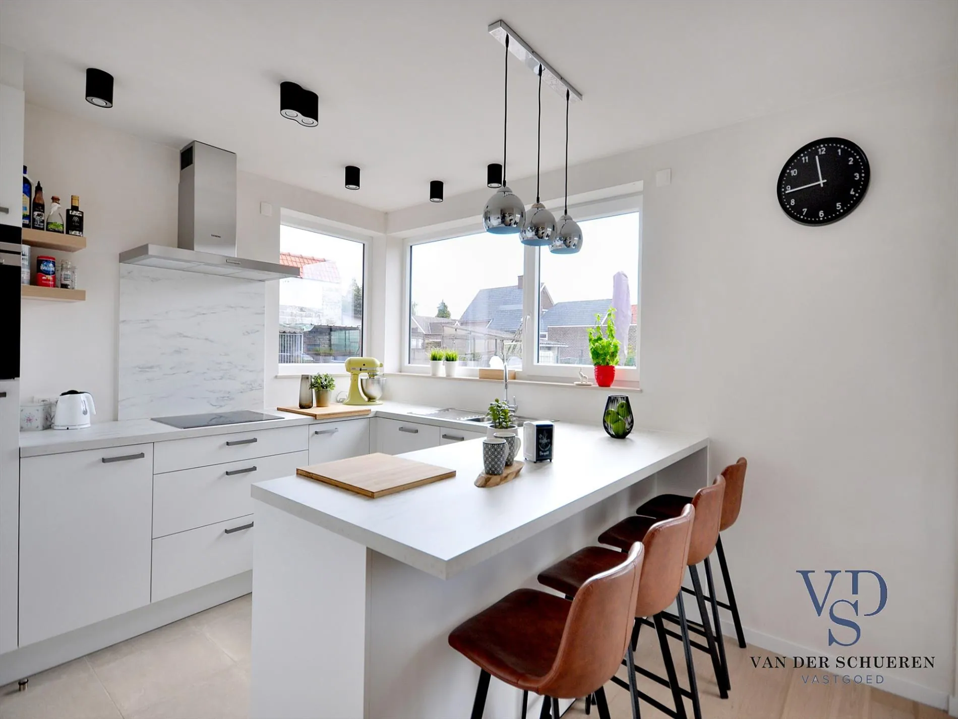 O.a. aanwezig : ontkalker, zonnepanelen, nest-thermostaat, automatische garagepoort, regenwaterrecuperatie,... .