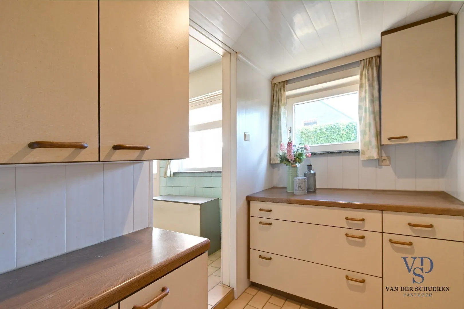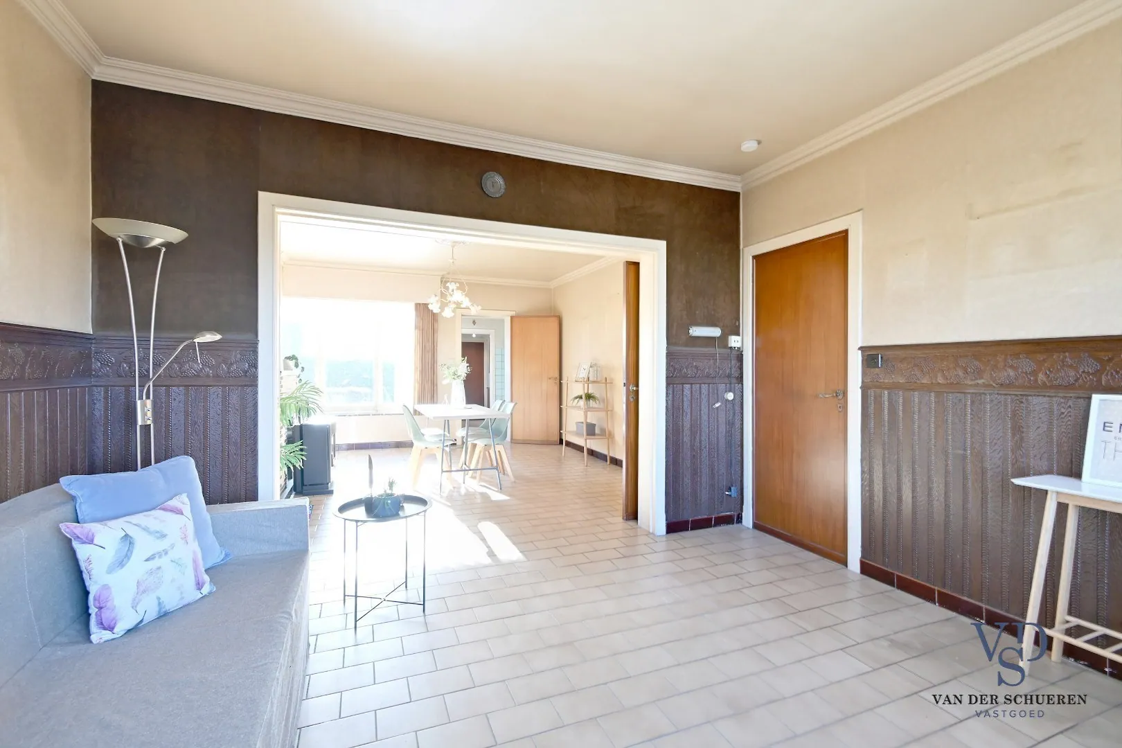 Aangename lichtrijke leefruimte, achteraan aansluitend op keuken en berging.