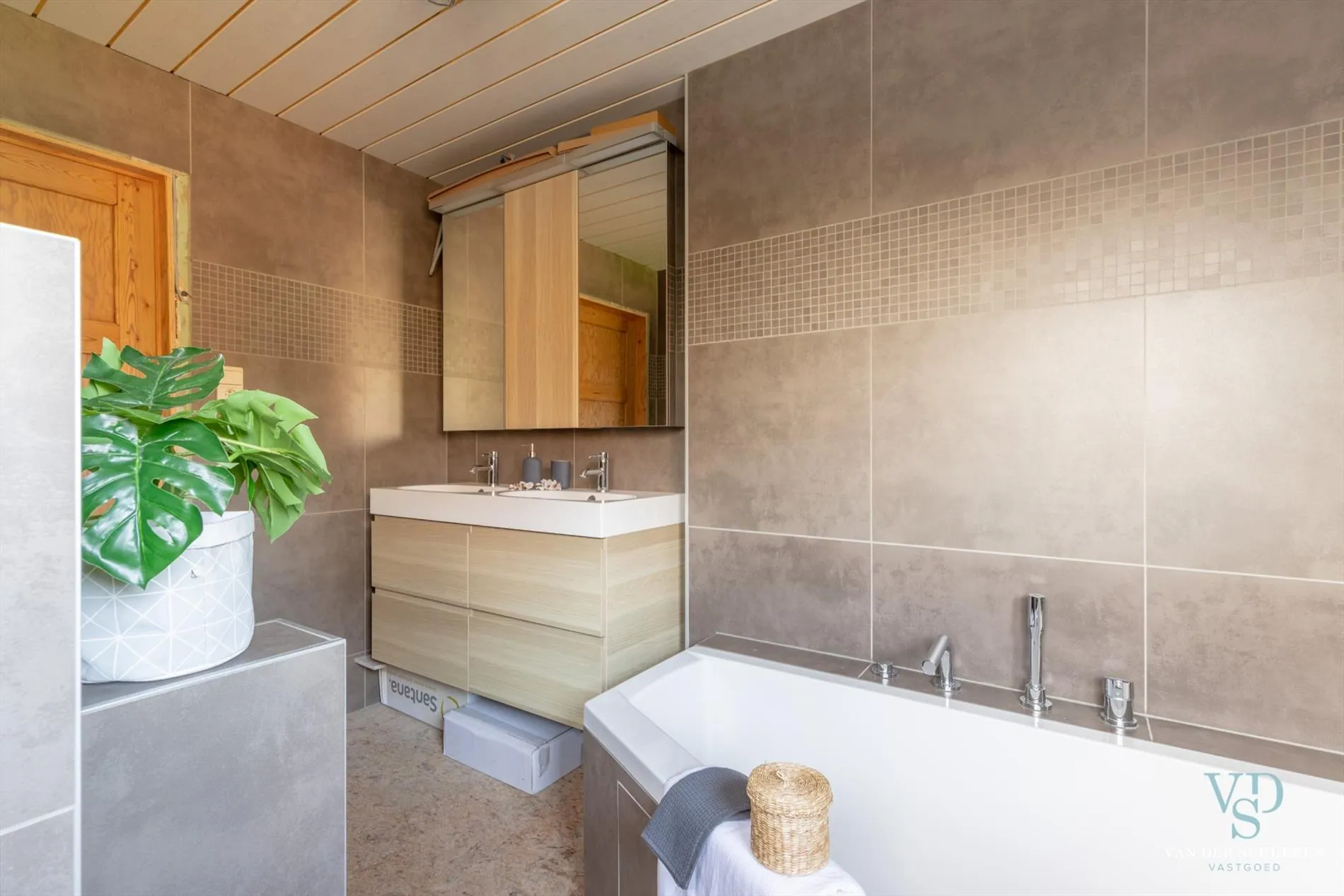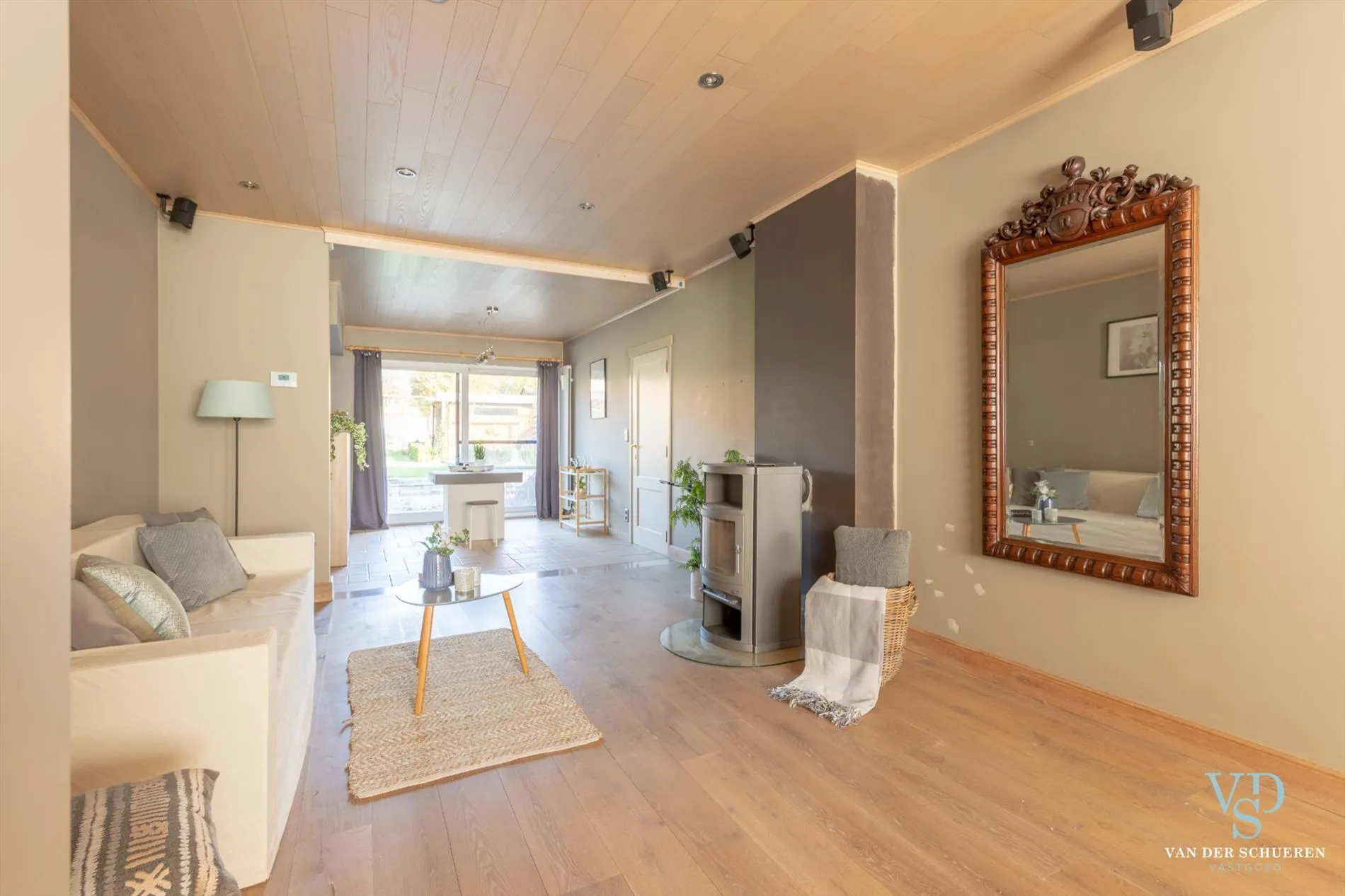 Je wordt verrast door de ruimte die je ervaart binnen deze woning, en die eveneens bijzonder praktisch ingedeeld werd. O.a. een wasplaats met douche naast de moderne keuken (met Siemens toestellen,...) en leefruimte, zodat je alzo makkelijk naar de tuin of naar de belendende (zeer ruime) garage kan.