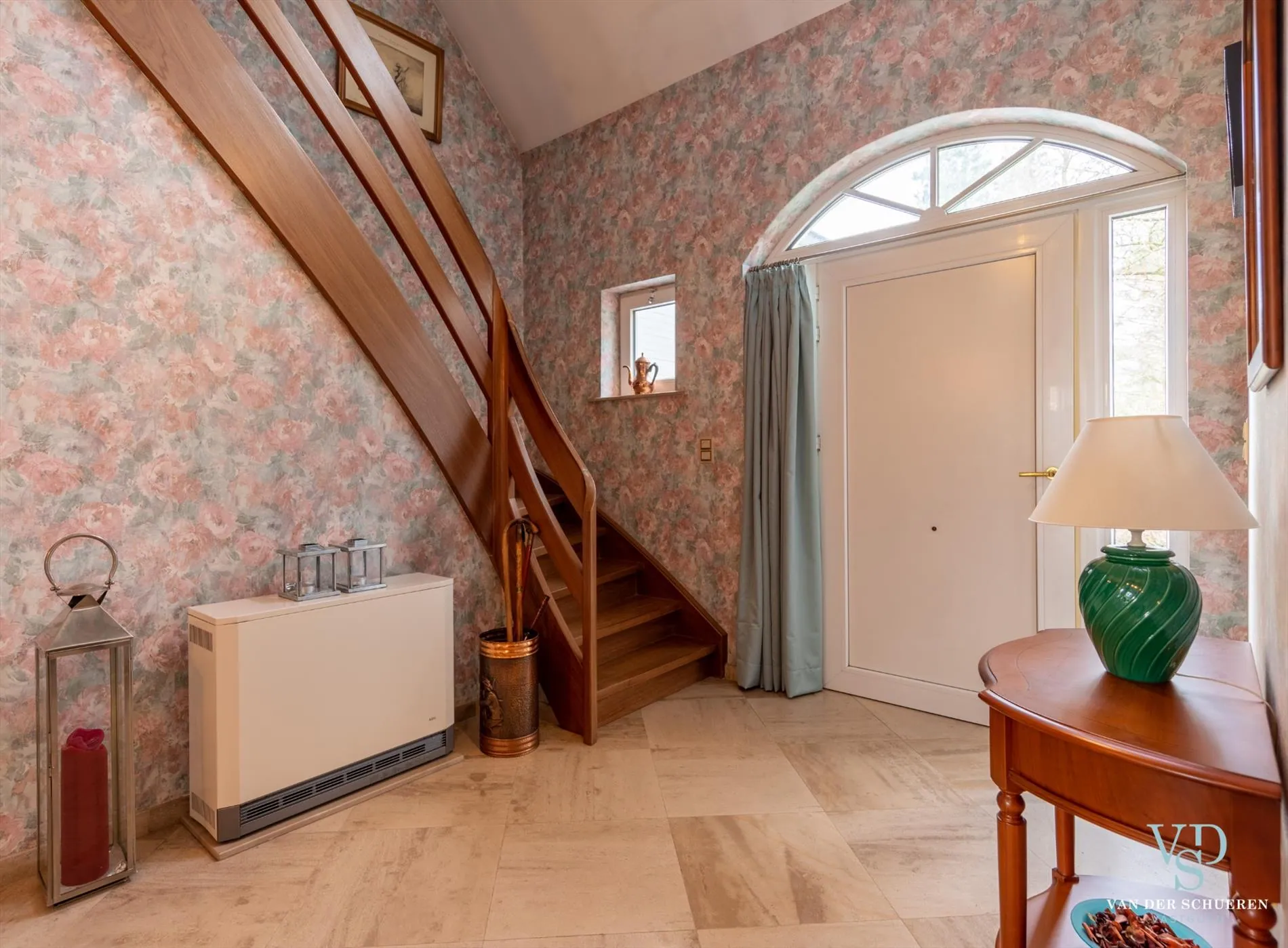 De statige inkom benadrukt het ruimtegevoel.