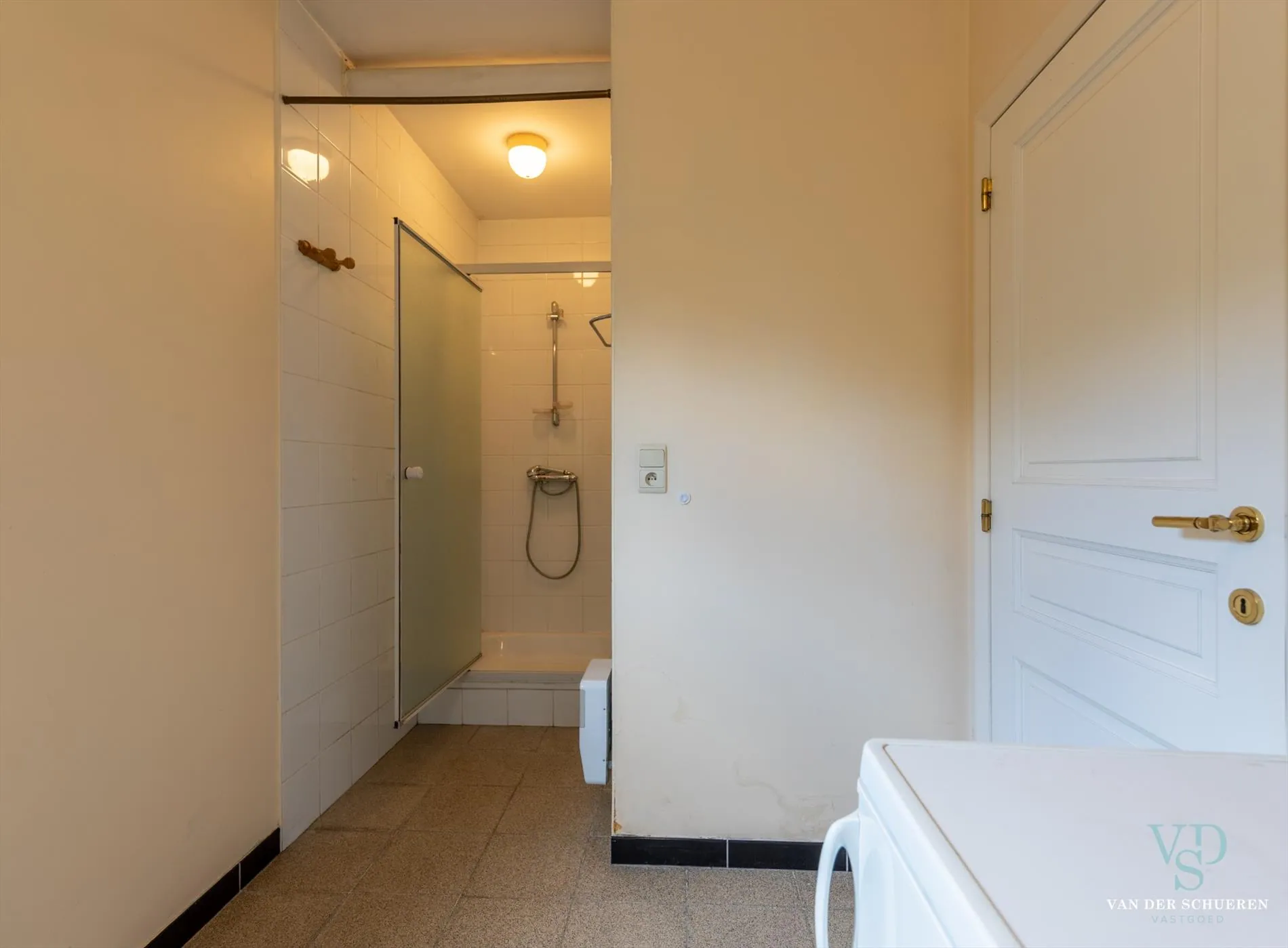 Naast de praktische keuken bevindt zich een sanitaire cel, met was-en-plas-accomodatie en een douche. Afzonderlijk toilet.