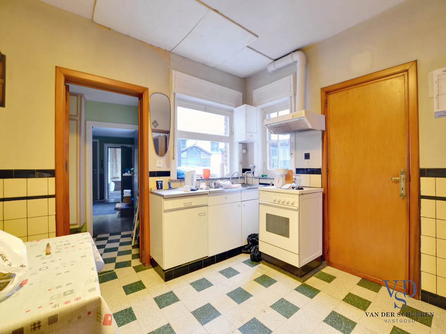 Het woongedeelte dient grondig gerenoveerd te worden, maar er kan alvast vertrokken worden van een stevige basis (bvb. 'afdek gelijkvloers' is eveneens in beton uitgevoerd).