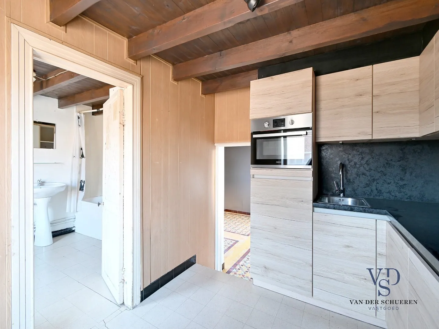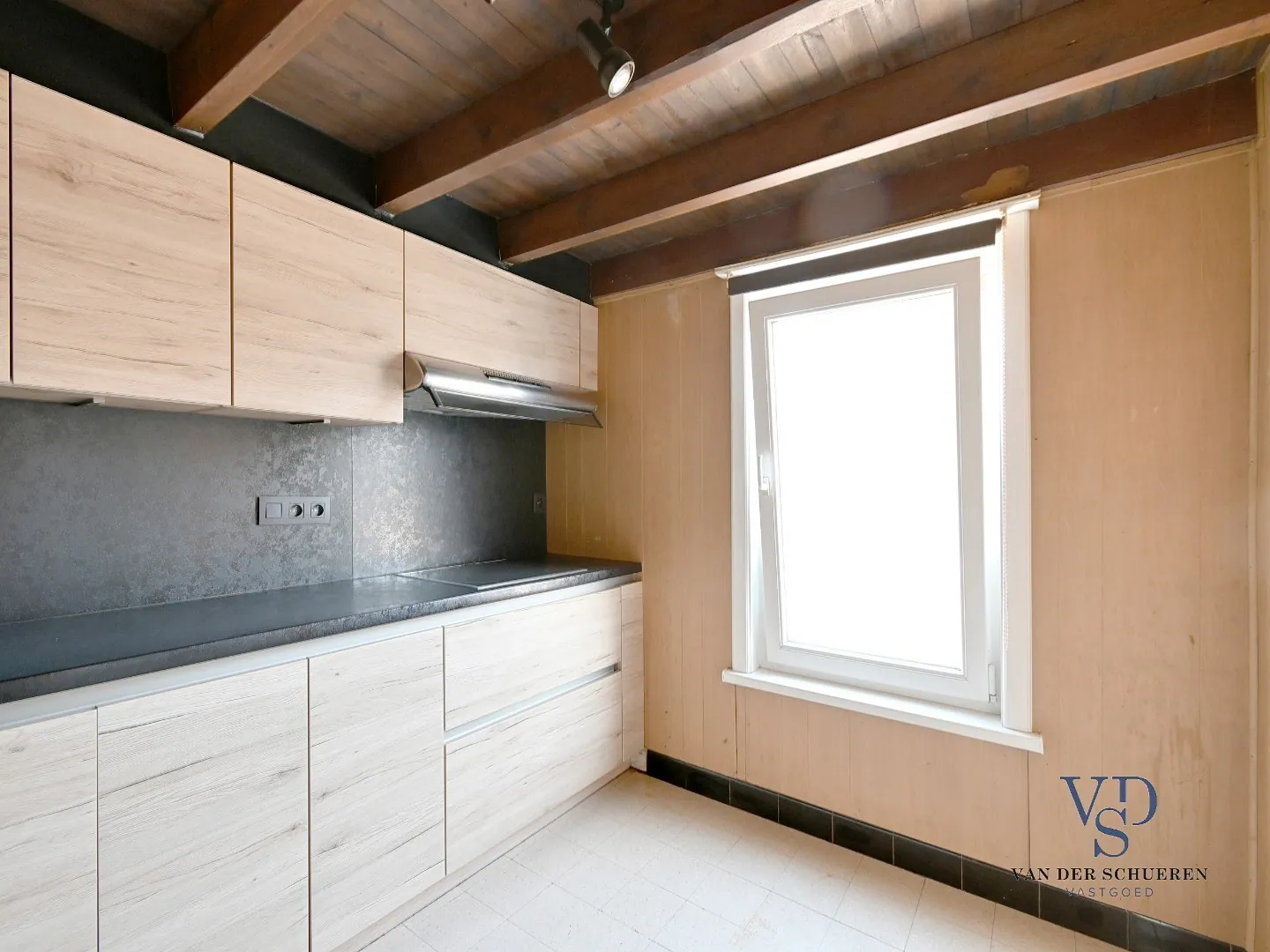 Net buiten de dorpskern van Dikkelvenne bevindt zich deze woning, met een gezellige leefruimte, eigentijdse keuken en belendende badkamer (toilet, bad en lavabo).