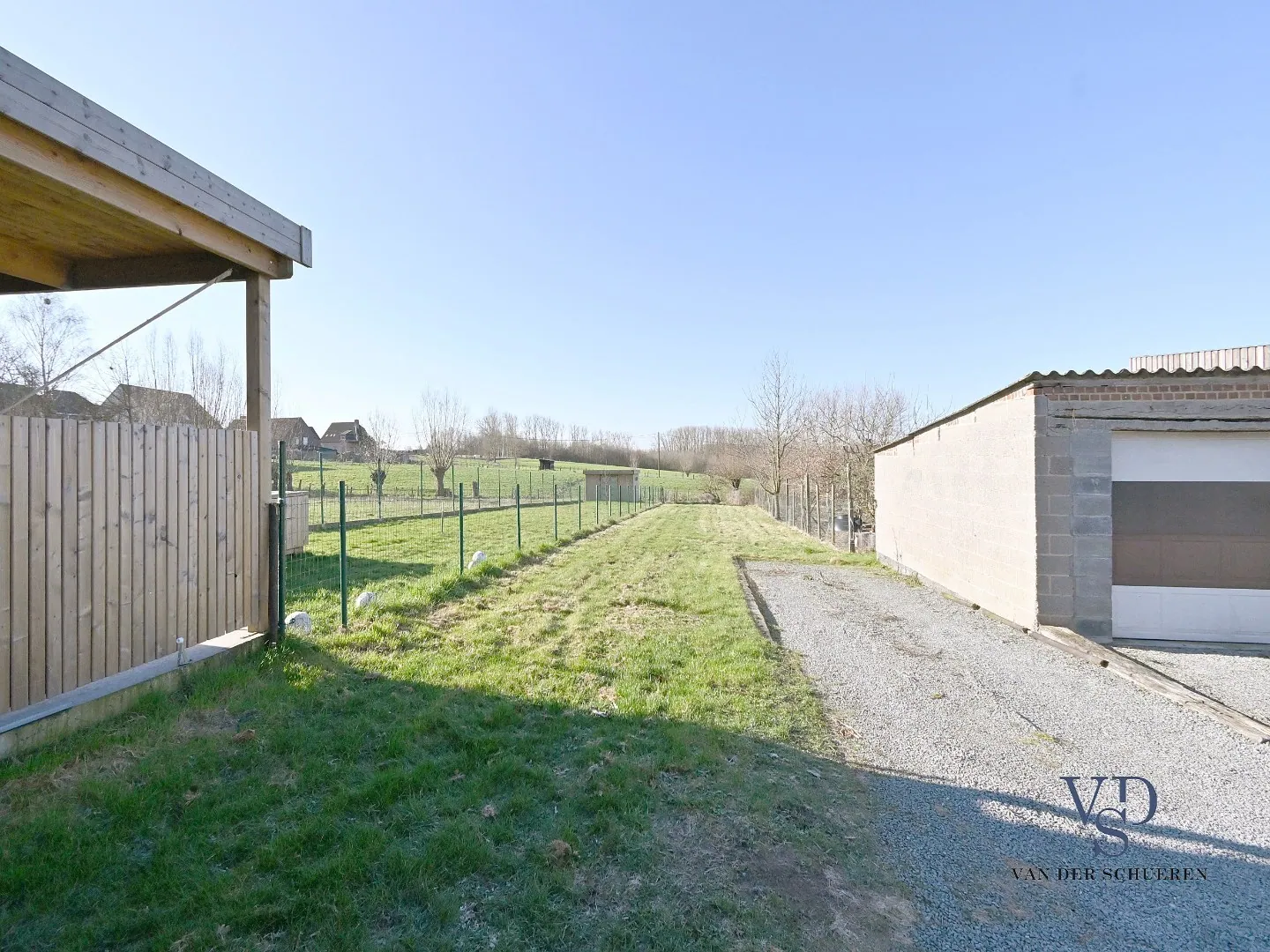 Handig is de met de buren gemeenschappelijke toegangsweg tot het achteraan gelegen grasland, alsook 2 parkeerplaatsen, een car-port en een berging.