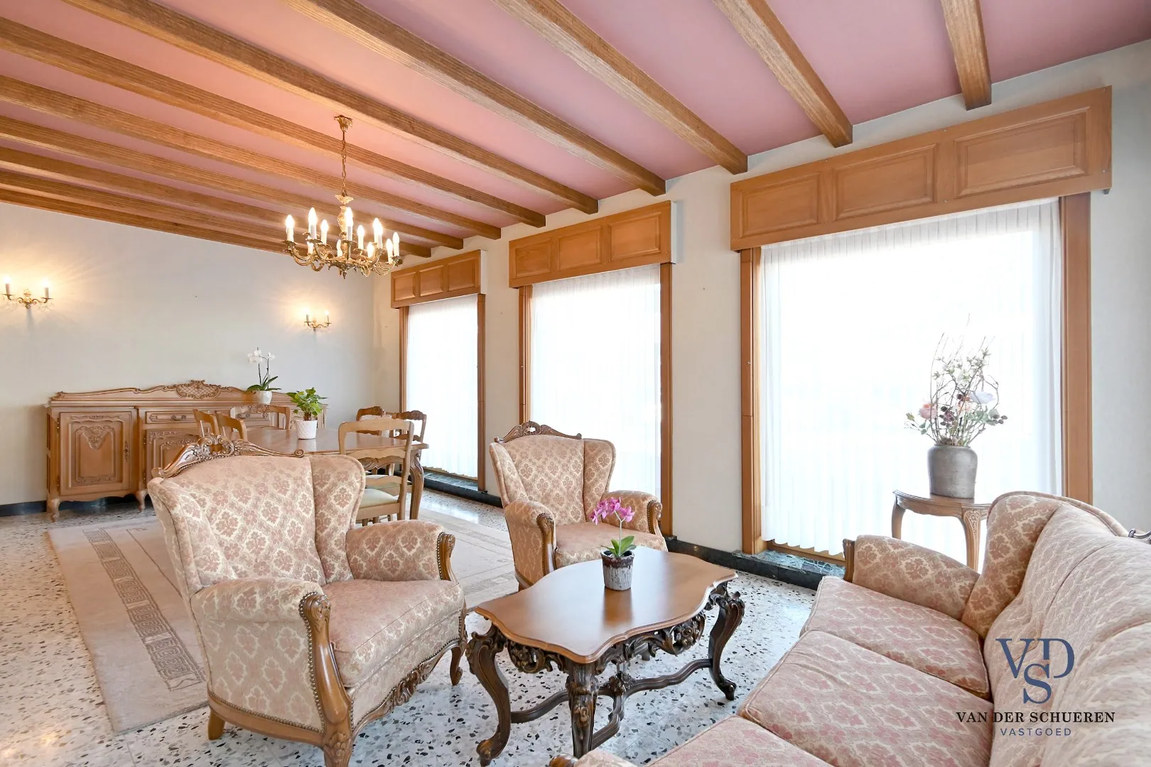 Bijkomend aanwezig : kelder- én zolderverdieping, alsook een afzonderlijke garage.