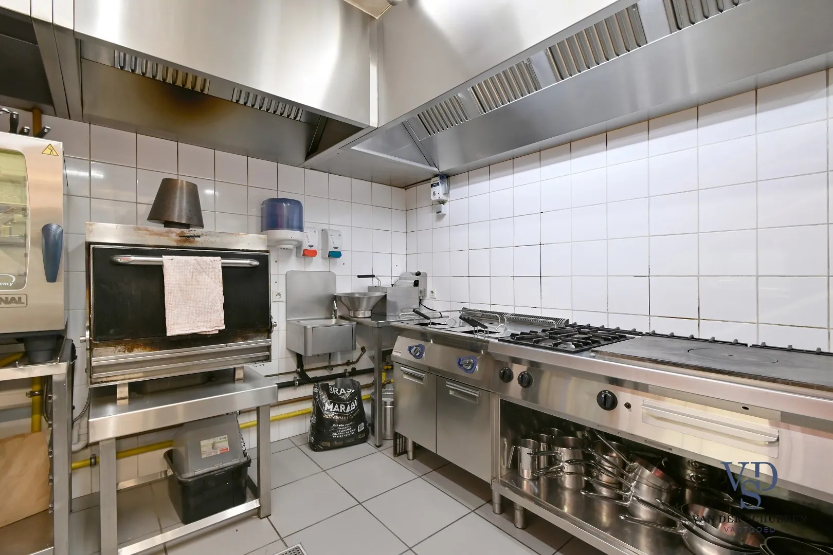 Momenteel is het gebouw ingericht als een sfeervol restaurant met een aparte feestzaal, perfect voor privéfeesten en bedrijfsevents. De verdieping van het hoofdvolume wordt op dit moment gebruikt als kantoorruimte, maar biedt ook alle mogelijkheden om er een comfortabele woonruimte van te maken – ideaal voor wie werk en privé graag combineert op één plek.