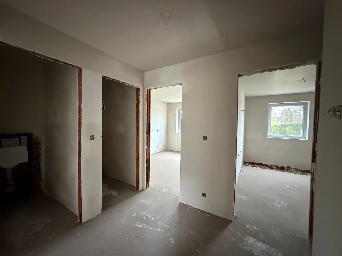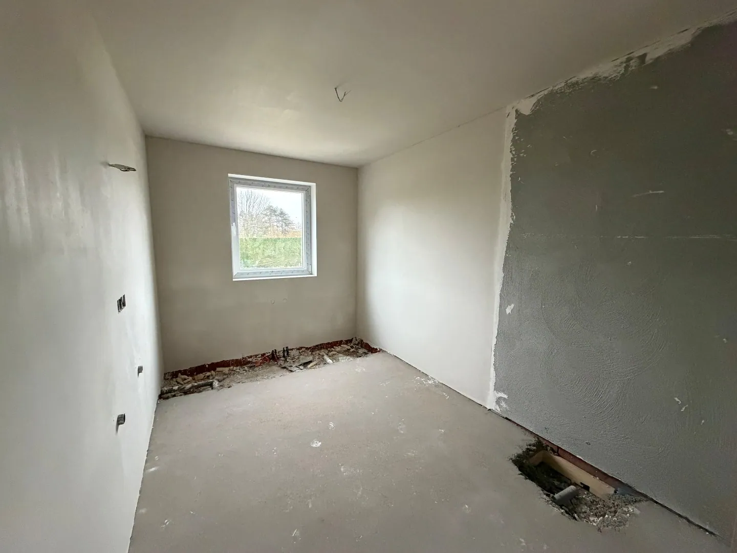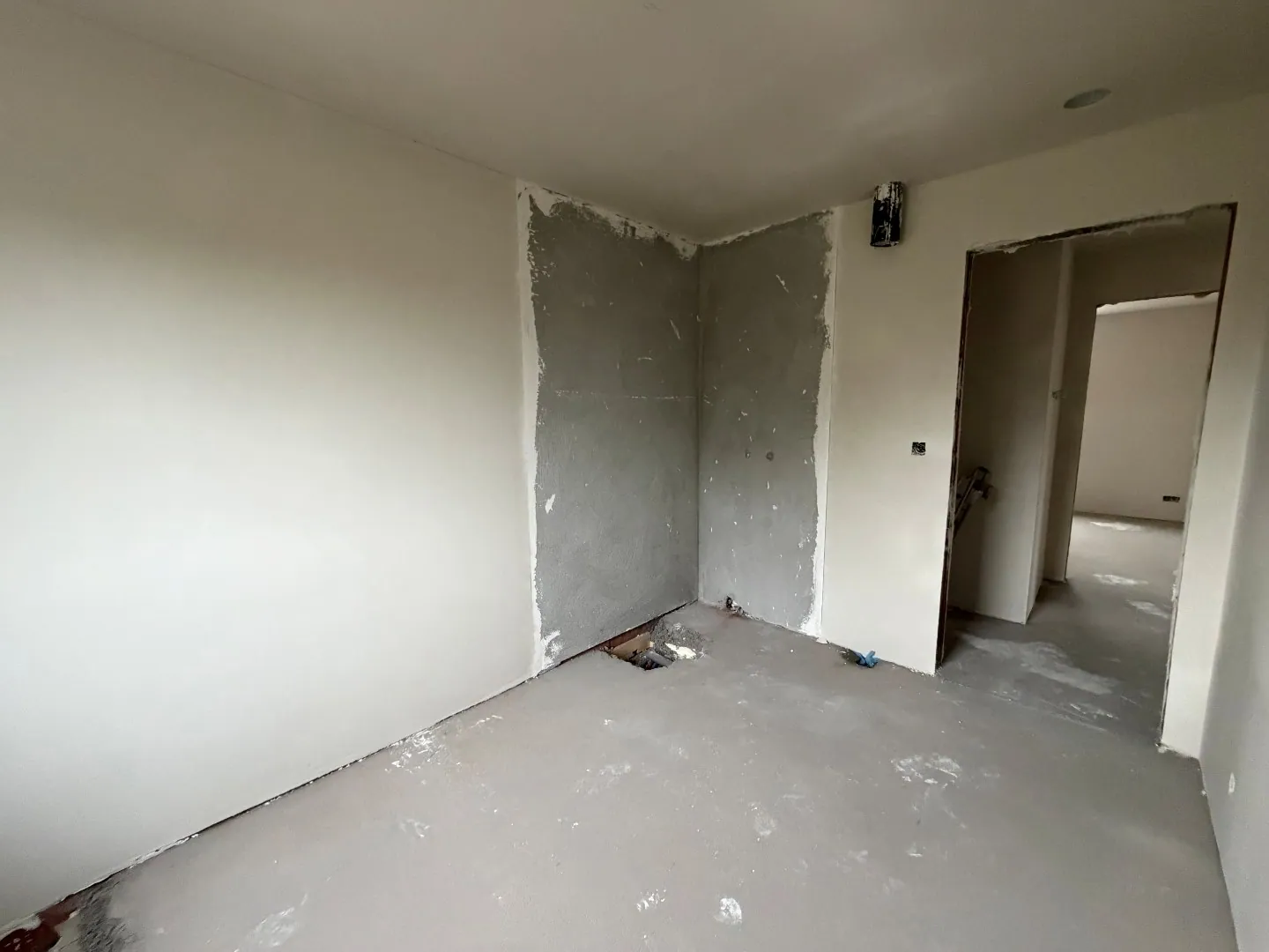 De verdere afwerking, waaronder sanitaire toestellen met meubilair, vloeren en faïence, binnendeuren en keuken, wordt gerealiseerd naar eigen smaak van de koper. De laminaatvloeren in de slaapkamers worden door de koper zelf voorzien.