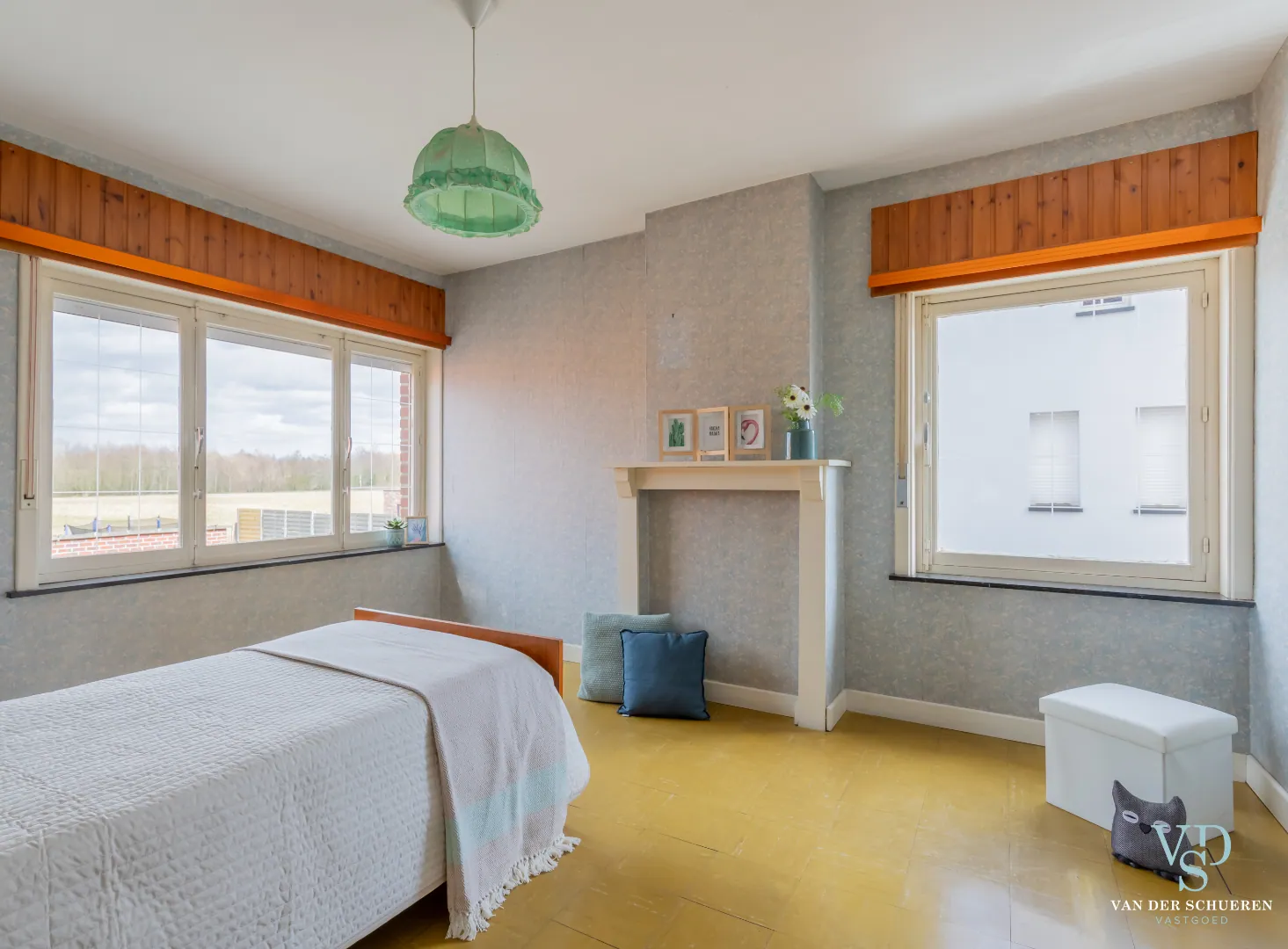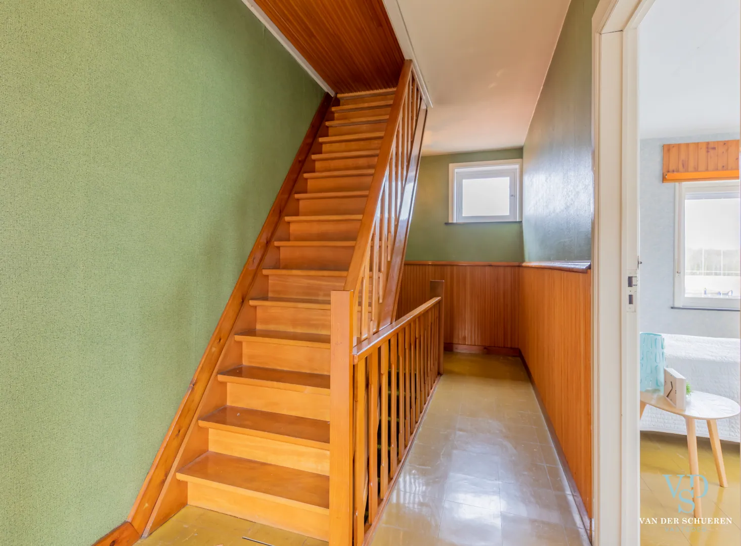 Op de eerste verdieping: 2 volwaardige slaapkamers en 1 bijkomende kamer.
