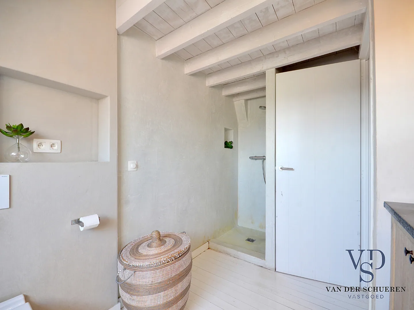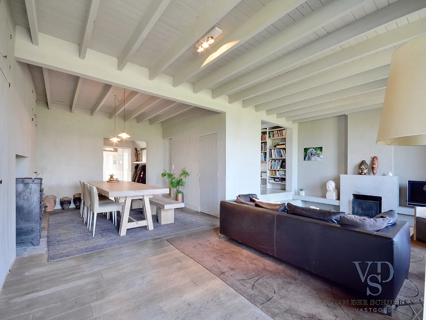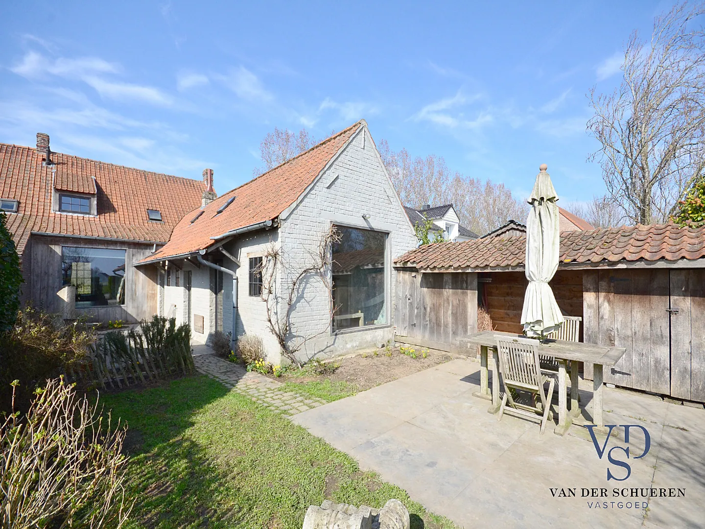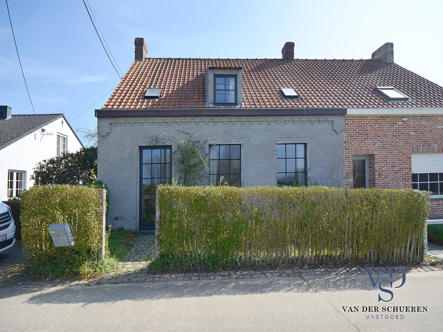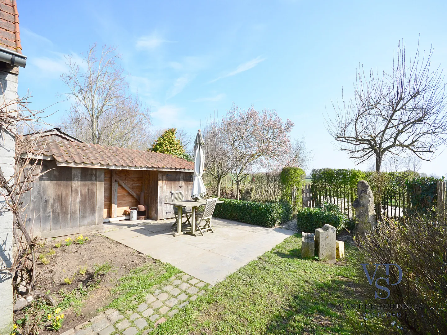 De ruime, bijzonder aangename leef- en zitruimte sluit aan op de thans als bureau ingerichte voute-kamer (met mortex-vloer). De praktische keuken baadt eveneens in stijl en licht. Deze huisstijl vinden we ook in tuin en terras terug.