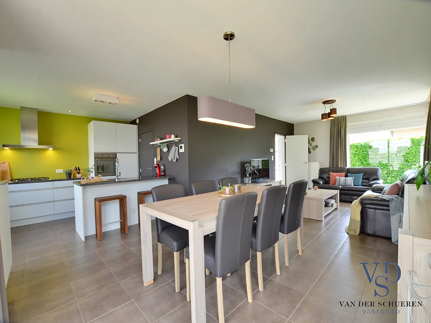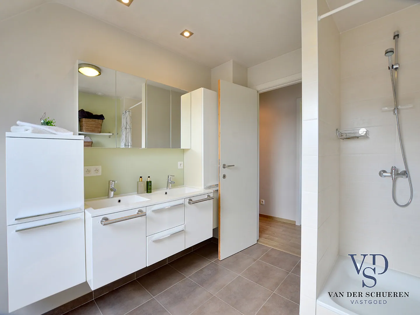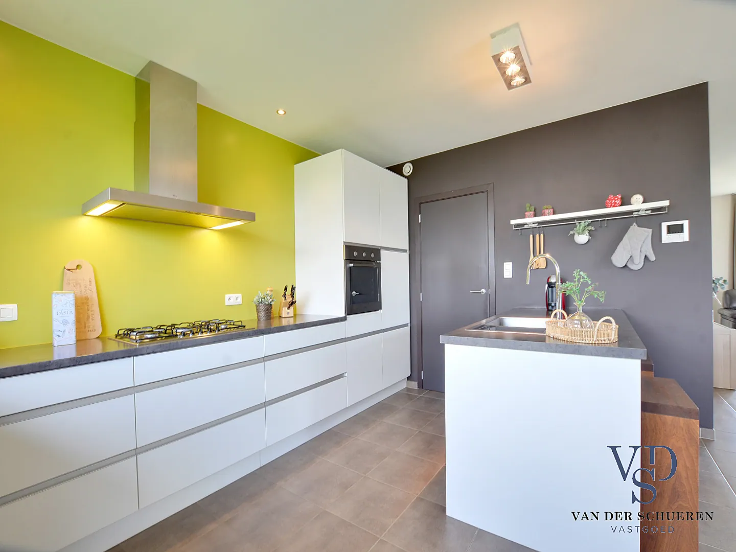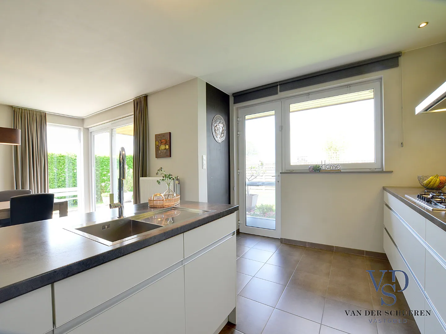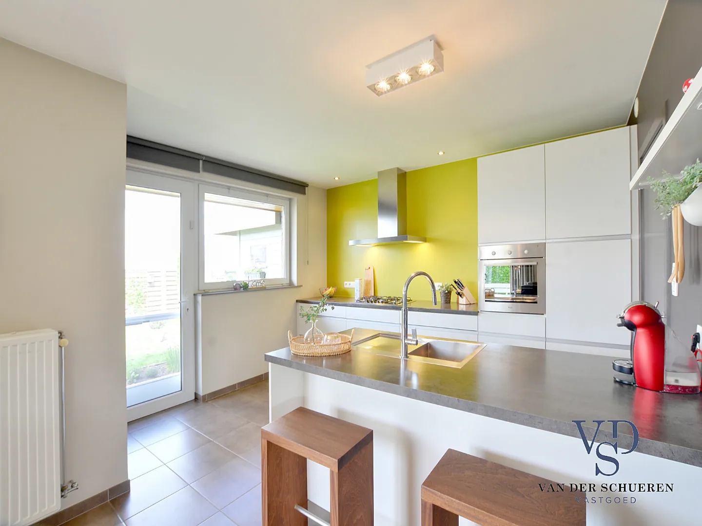 Eigentijdse, kwaliteitsvolle inrichting, zowel wat de lichtrijke leefruimte met open keuken (en praktische berging en wasplaats) als wat de 3 praktische slaapkamers en volledig uitgeruste badkamer (douche én bad) op de verdieping betreft.