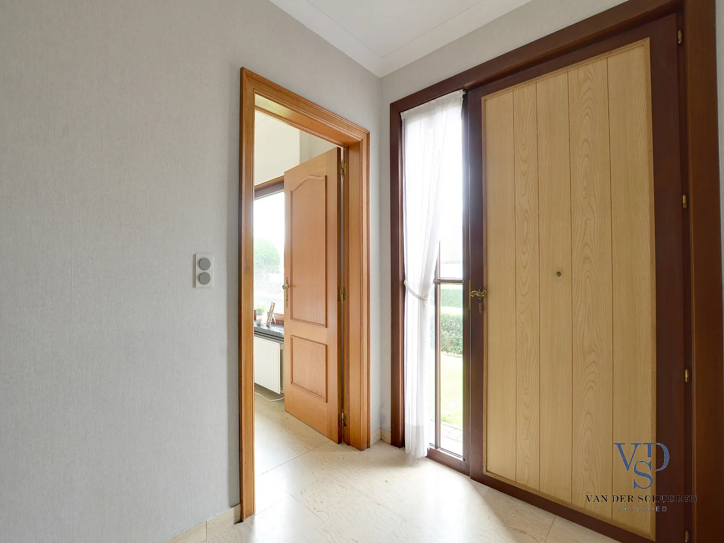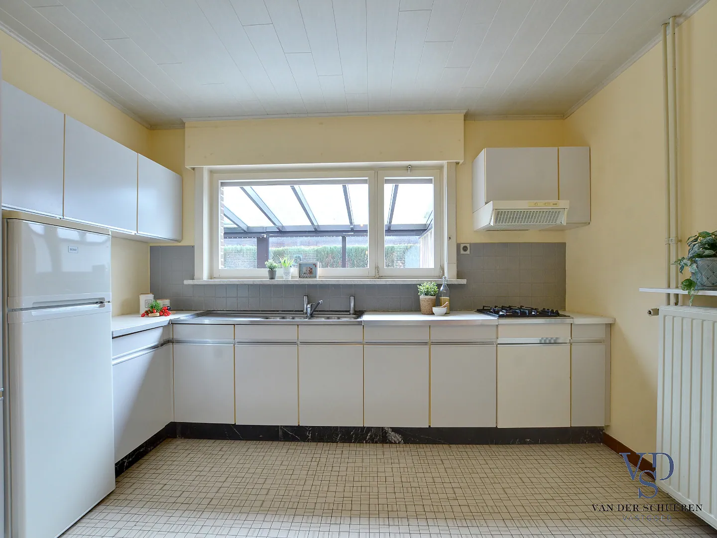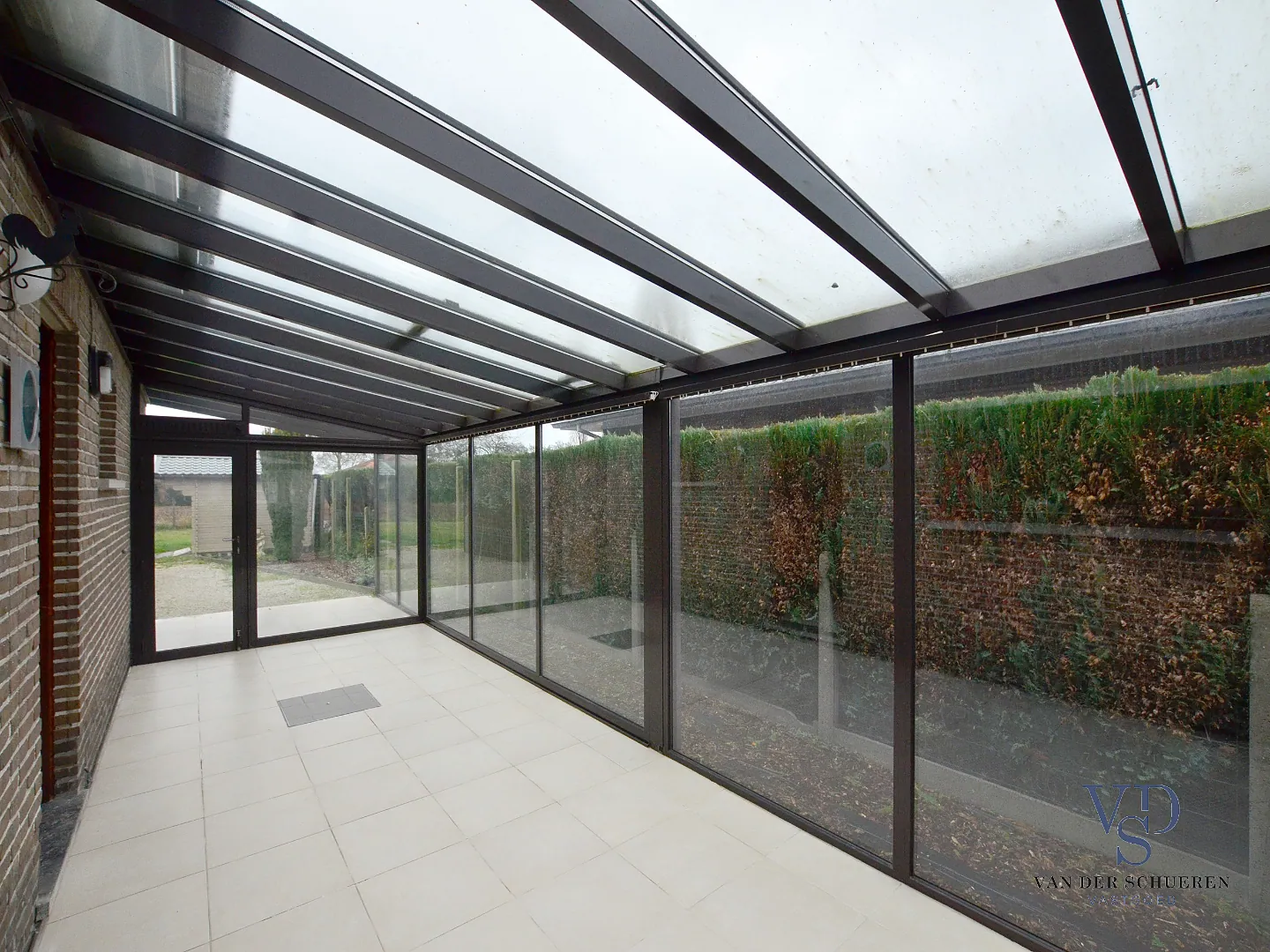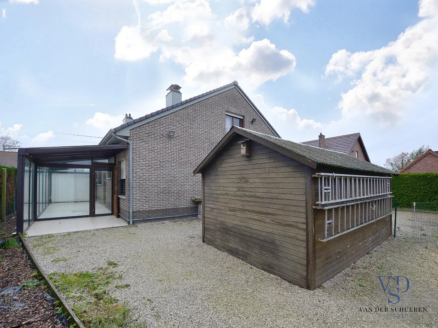 Ook is deze bijzonder degelijke woning voorzien van een aanpalende leefveranda, afzonderlijke garage en aangename tuin met zicht op het groen.