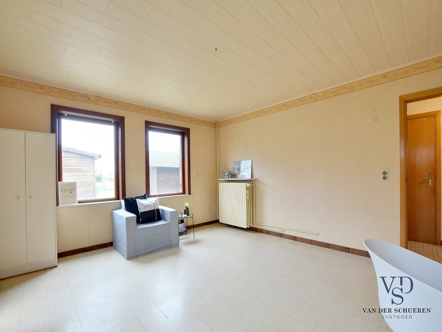 Verder is deze momenteel ingedeeld als open-/bergruimte, maar biedt mogelijkheden naar extra kamers.