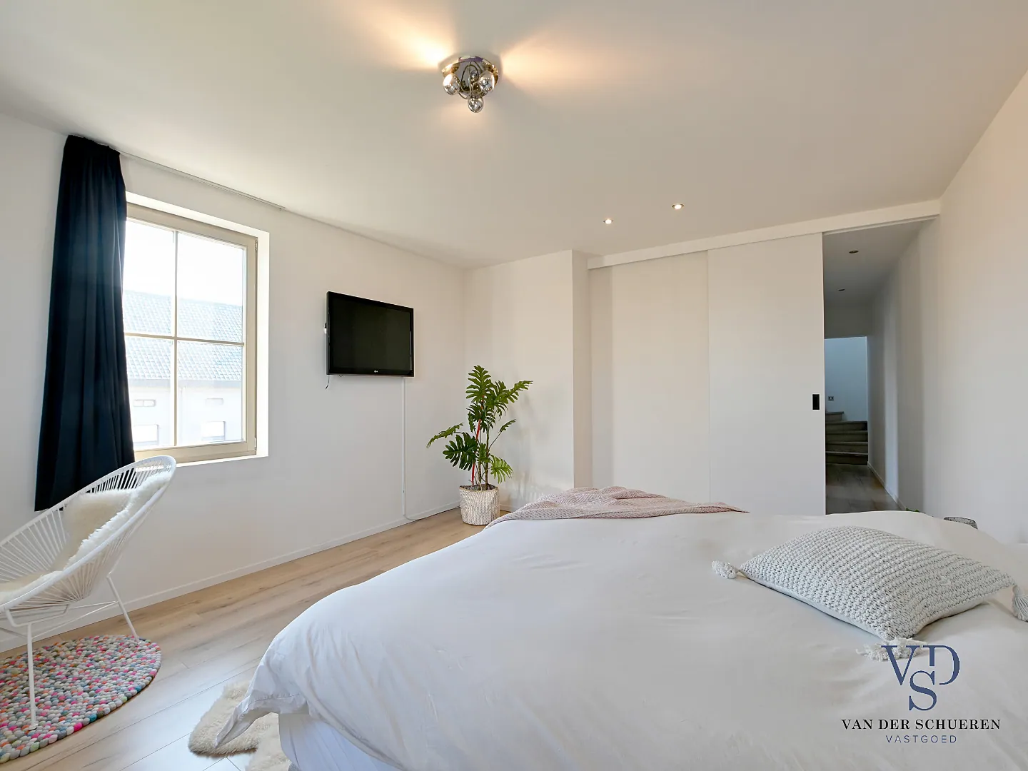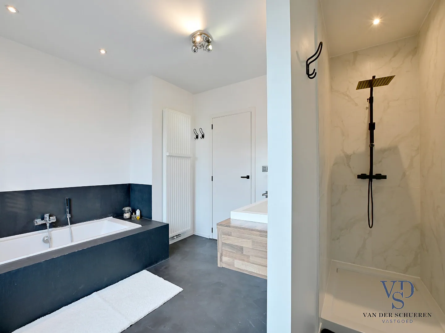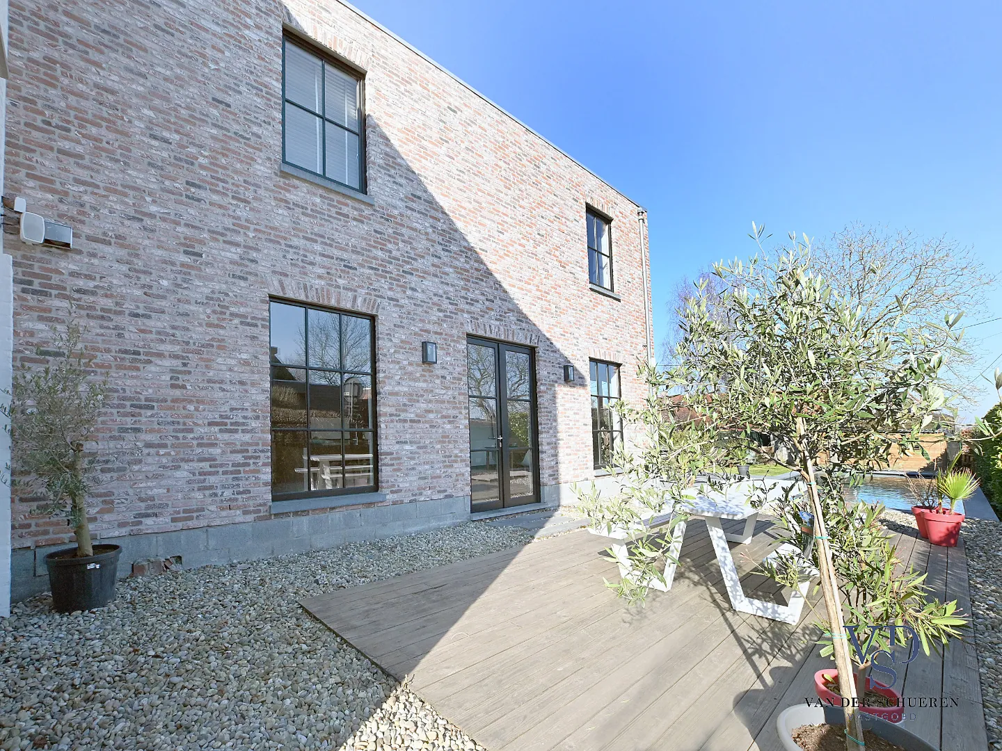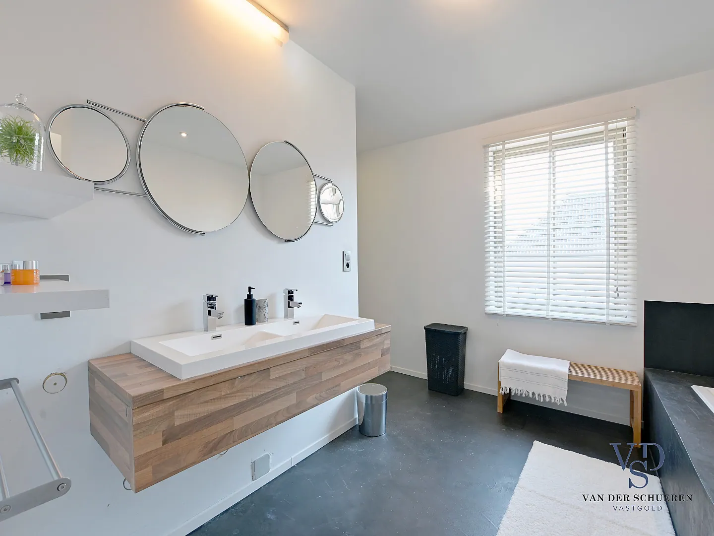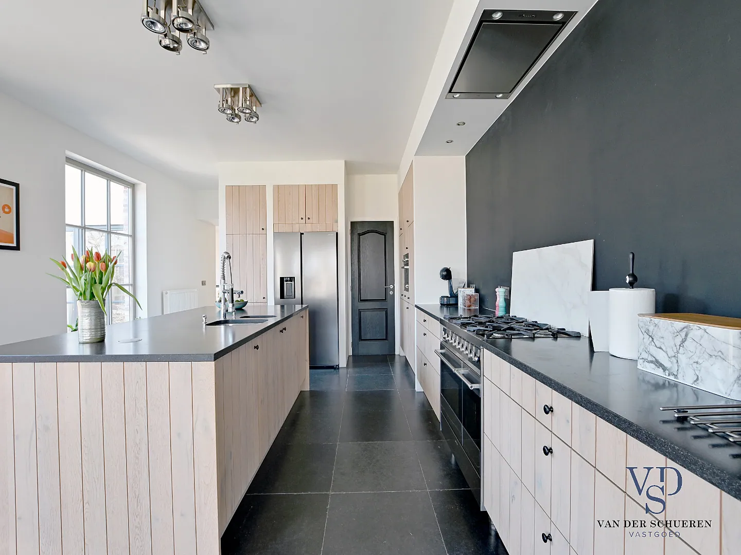 Een bijzondere troef aan deze woning is dan ook het architecturale concept én de afwerkingsgraad met vloeren in eiken parket als in Belgische blauwe hardsteen.