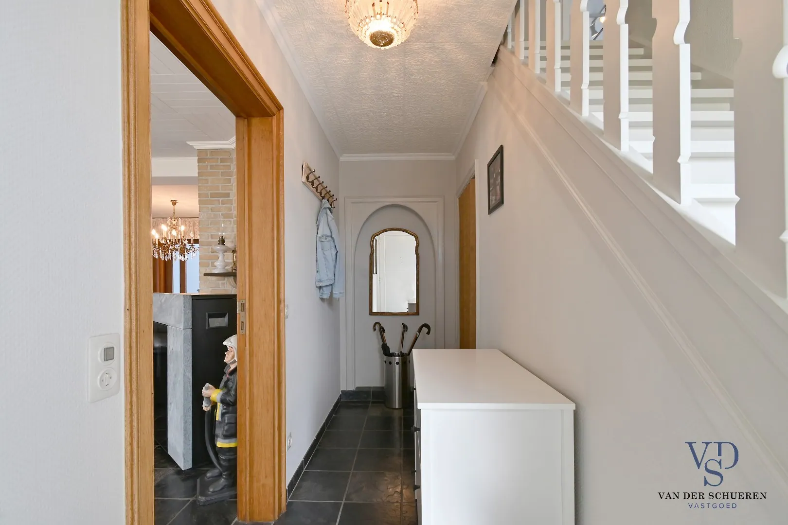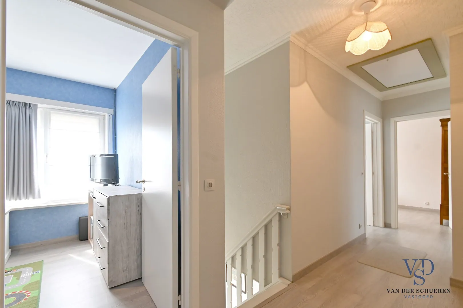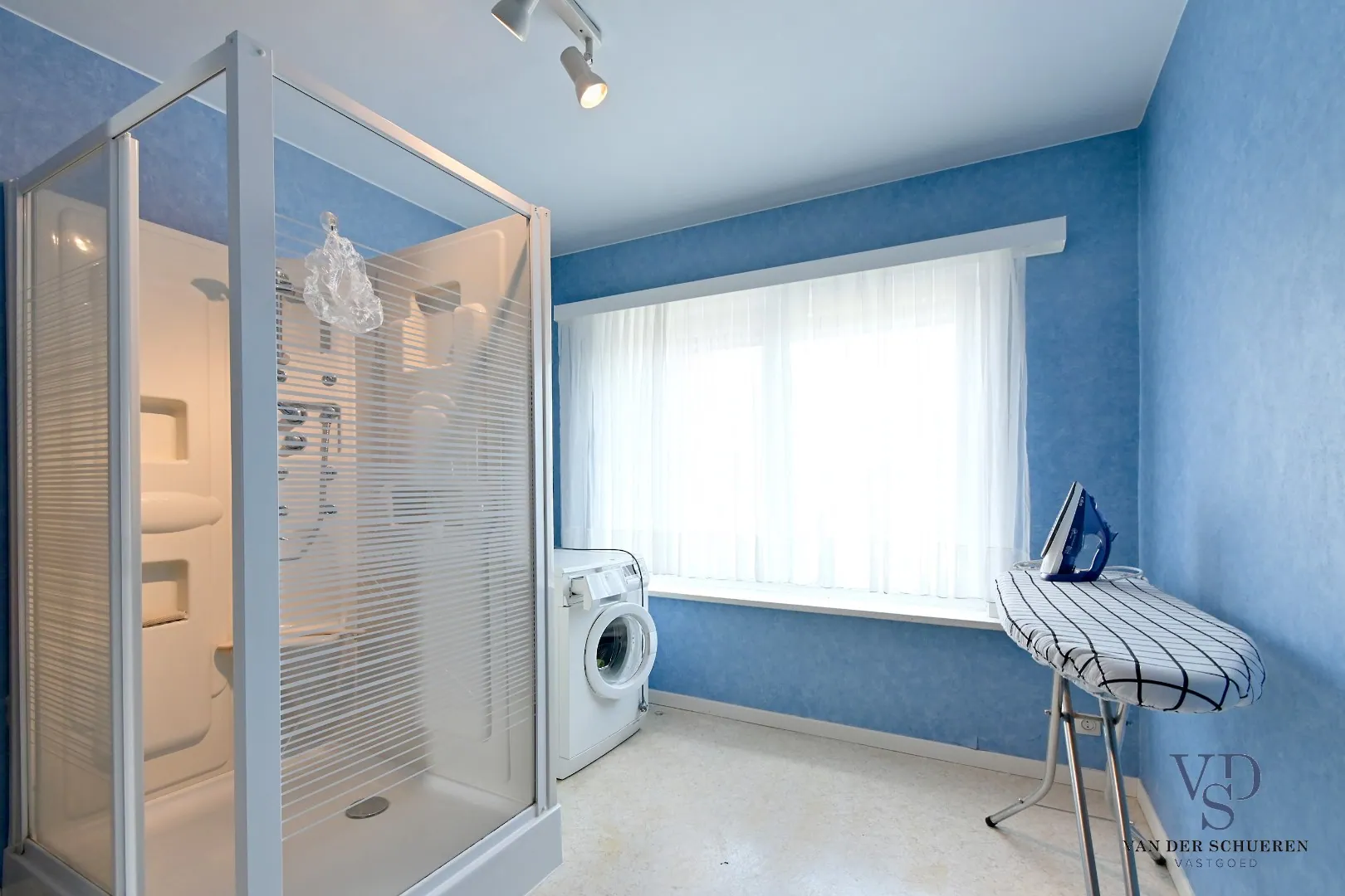 Deze woning is op het gelijkvloers voorzien van een praktische inkomhal, aangename leefruimte voorzien van een pelletkachel, afzonderlijke keuken, apart toilet en lichtrijke leef-veranda. Op de eerste verdieping zijn vervolgens 4 (!) slaapkamers, een badkamer en een praktische wasruimte mét douchecel ondergebracht.