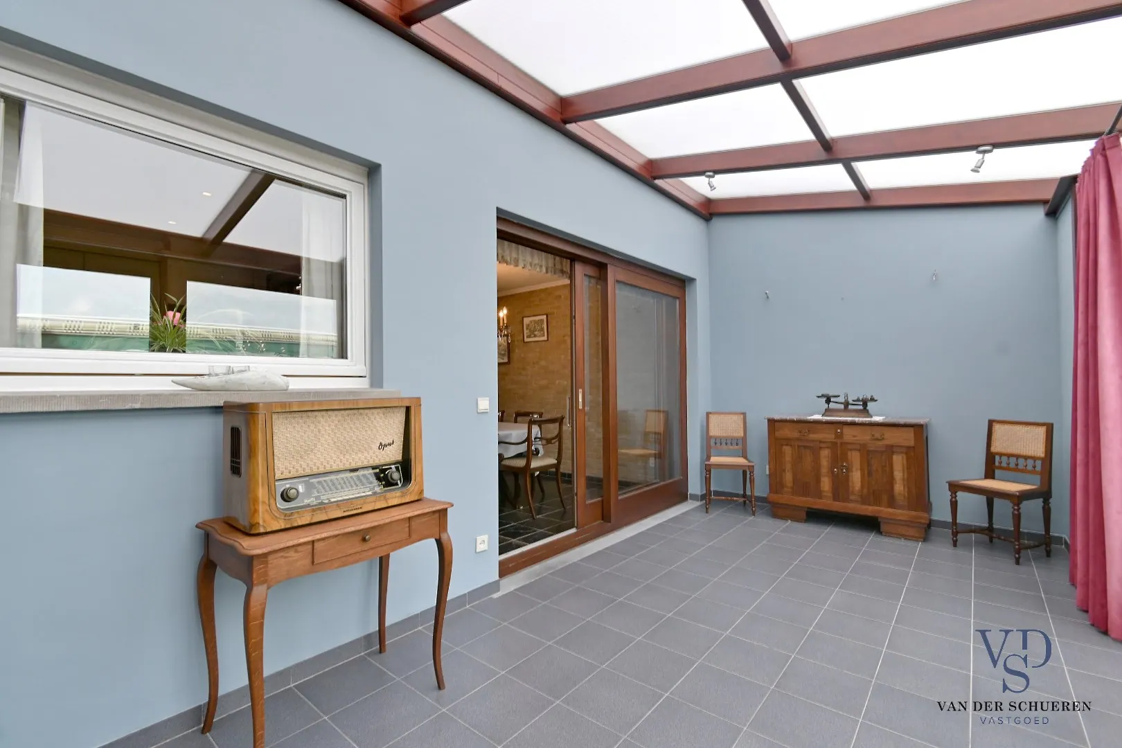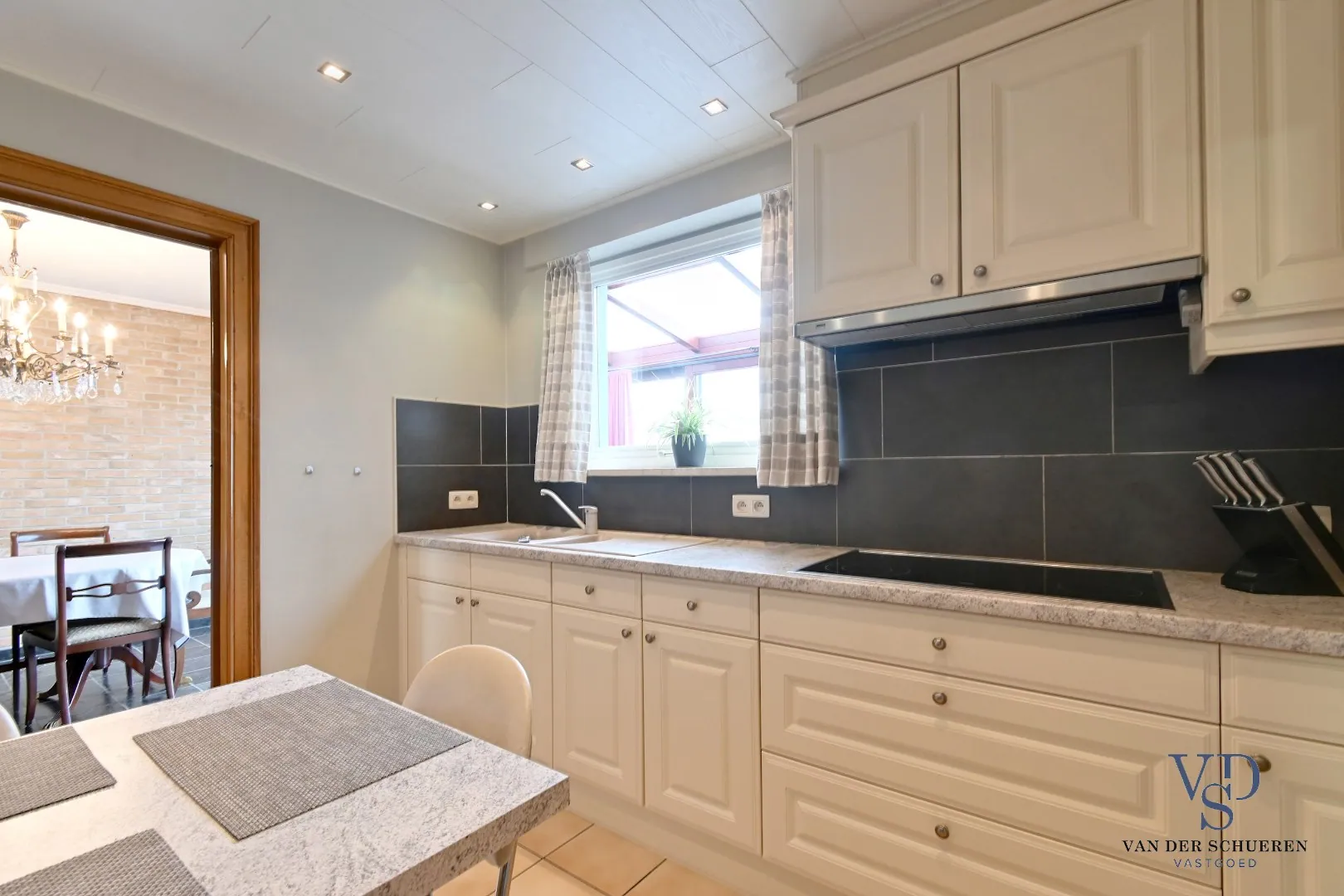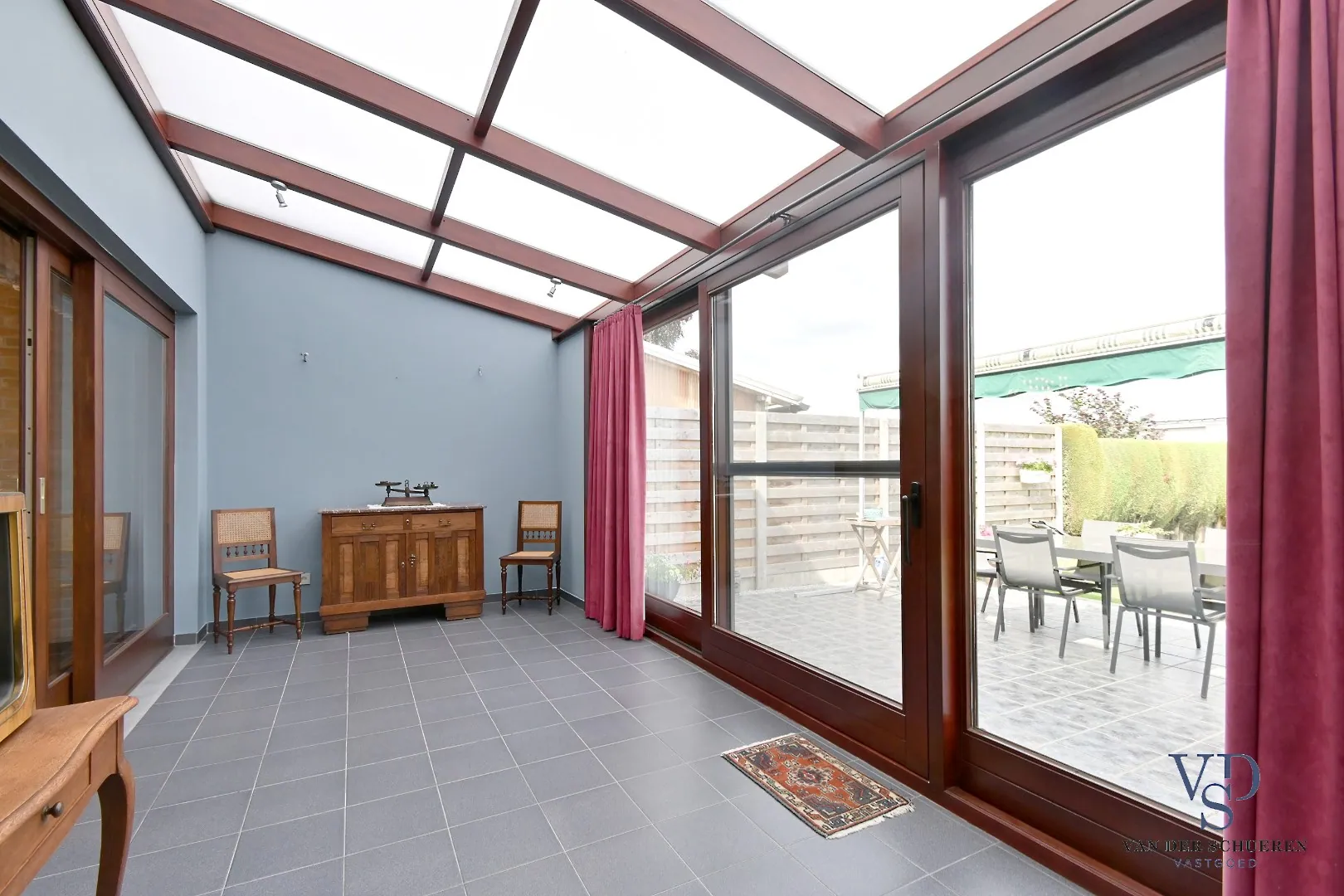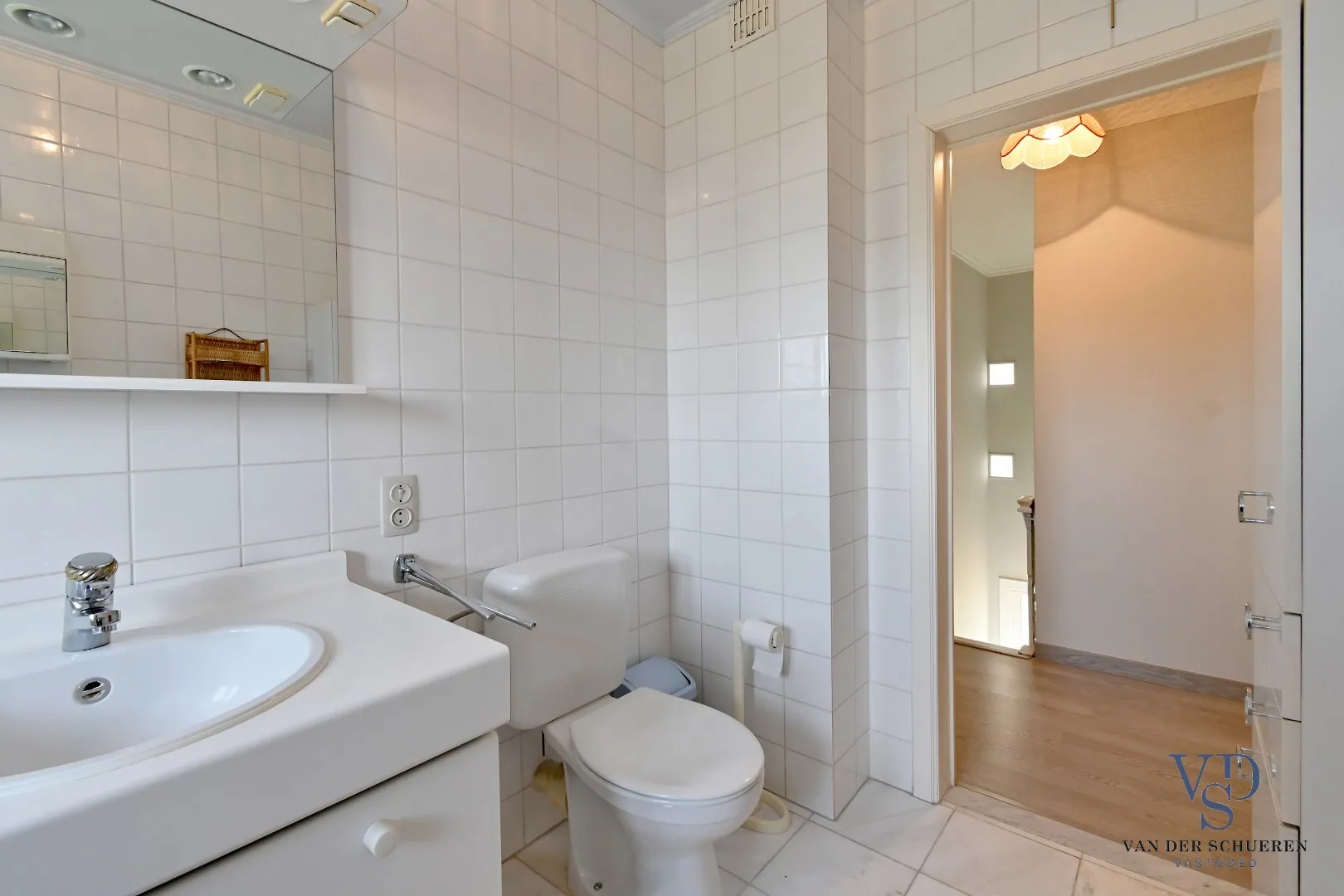 Deze woning is op het gelijkvloers voorzien van een praktische inkomhal, aangename leefruimte voorzien van een pelletkachel, afzonderlijke keuken, apart toilet en lichtrijke leef-veranda. Op de eerste verdieping zijn vervolgens 4 (!) slaapkamers, een badkamer en een praktische wasruimte mét douchecel ondergebracht.
