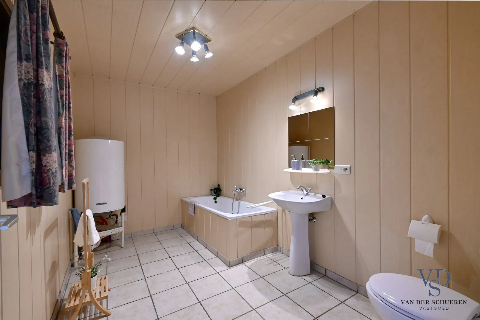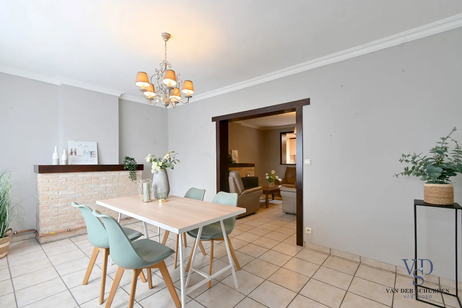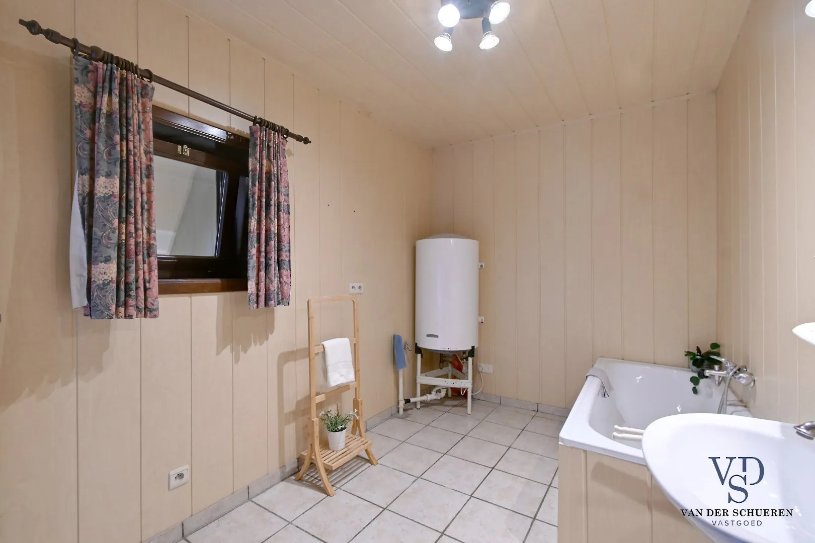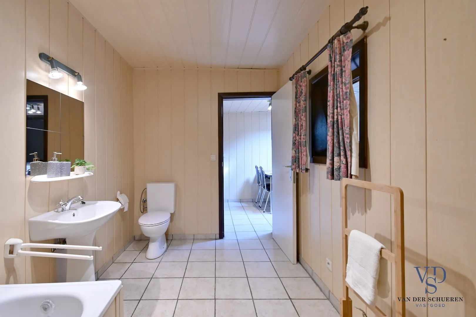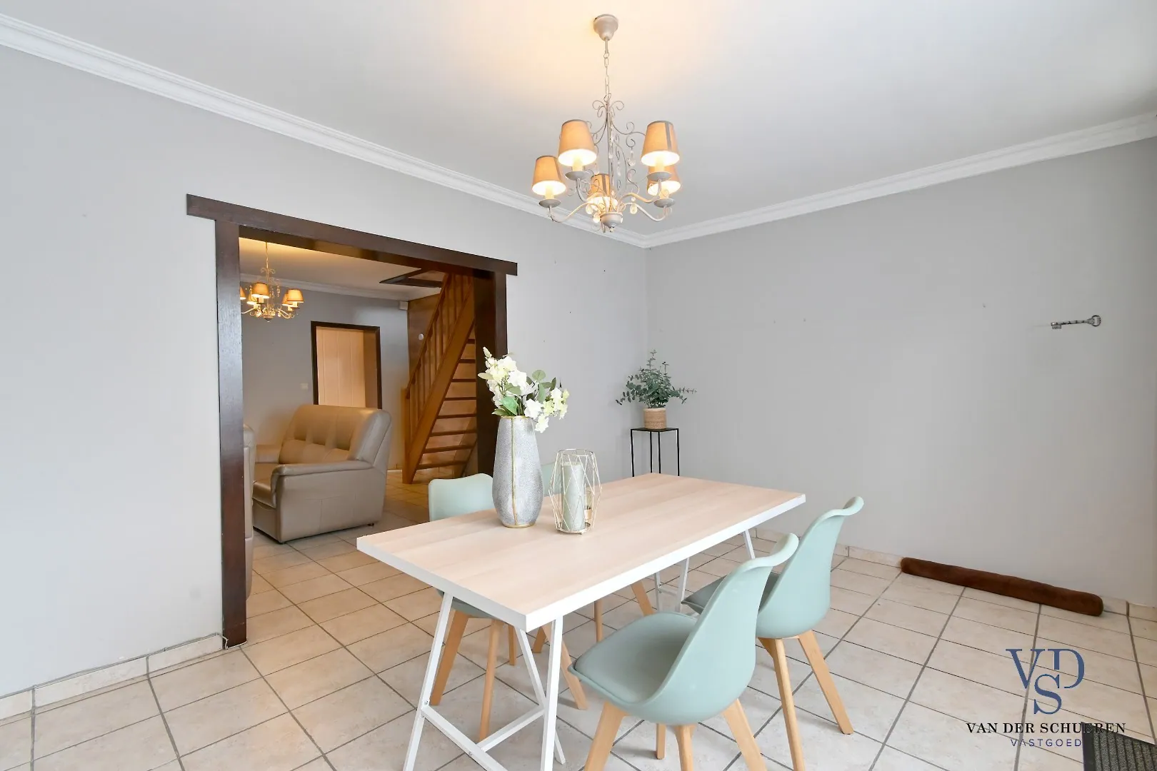 Het gelijkvloers omvat een ruime leefruimte met aansluitend een ruime keuken en een praktische badkamer.