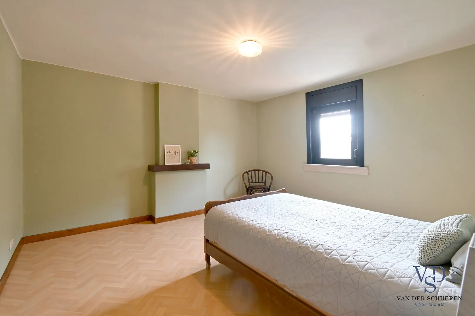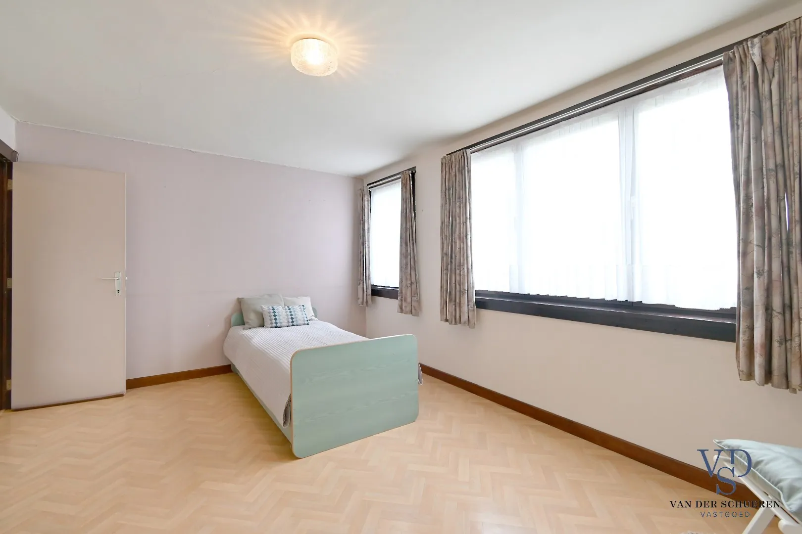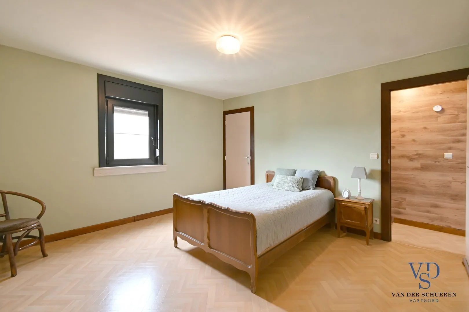 De verdieping telt twee grote slaapkamers.