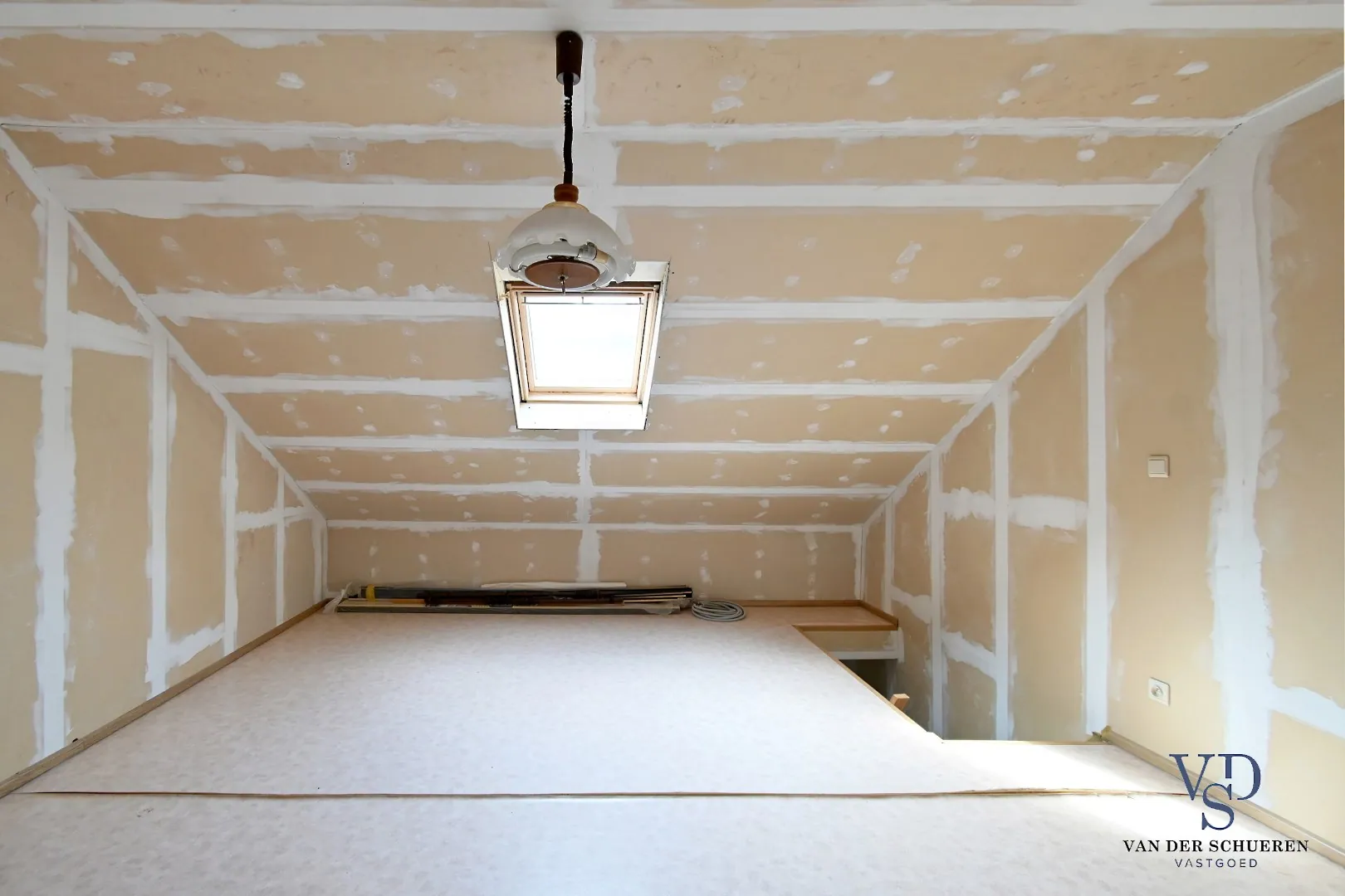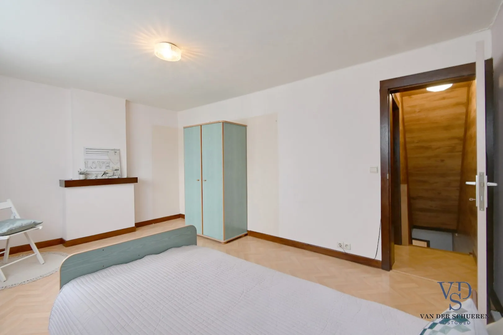 Eveneens een ruime, geïsoleerde zolder (3de slaapkamer, met een vaste trap).