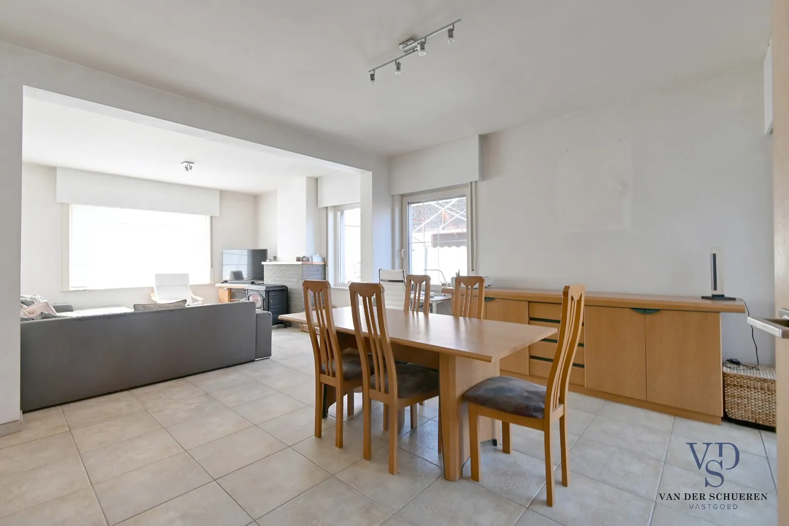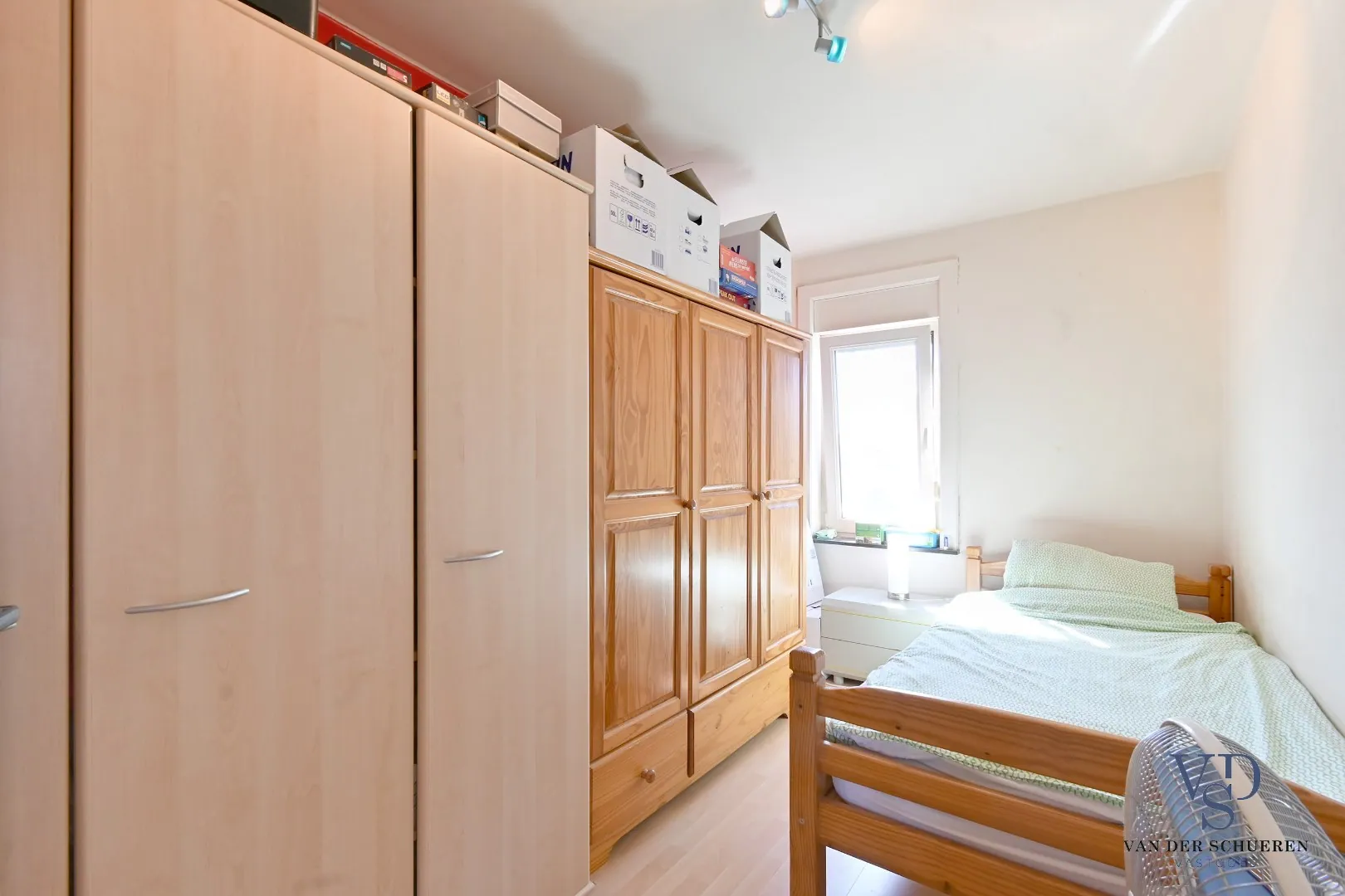 Deze bijzonder degelijke woning is op het gelijkvloers voorzien van een inkomhal, ruime leefruimte, afzonderlijke keuken en badkamer. De eerste en tweede verdieping tellen samen 5 (!) slaapkamers.